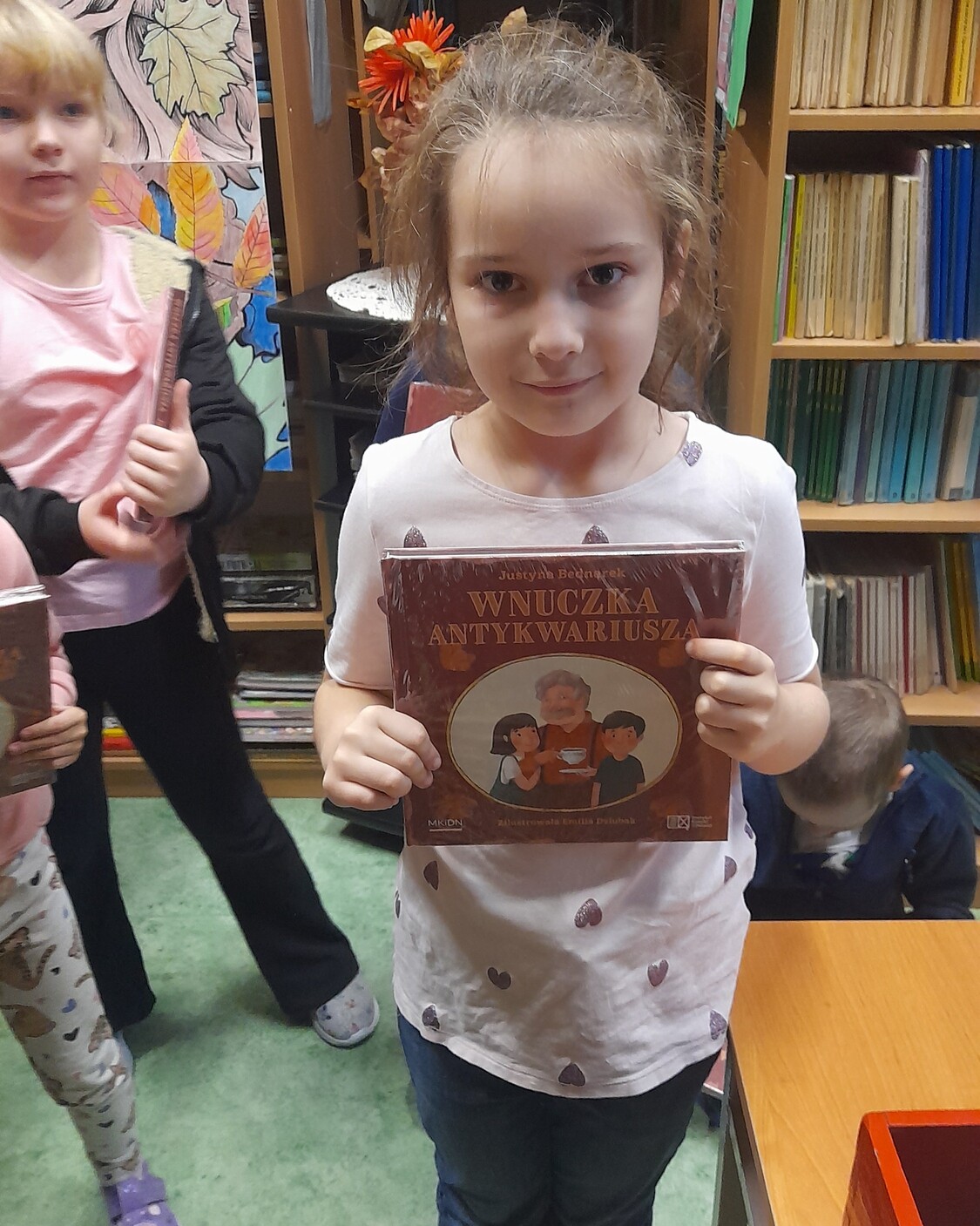 W ramach ogólnopolskiej kampanii „Mała książka – wielki człowiek” uczniowie klasy pierwszej otrzymali w szkolnej bibliotece wyprawki czytelnicze. Inicjatywa ma na celu promowanie czytelnictwa wśród najmłodszych oraz zachęcanie dzieci do odkrywania świata literatury. Tegoroczna edycja Wyprawki Czytelniczej zawiera dwie wyjątkowe publikacje. „Wnuczka antykwariusza” to opowieść wprowadzająca młodych czytelników w magiczny świat książek i przygód, ukazująca tajemnice ukryte na kartach literatury. Z kolei „Kochasz? Czytaj razem z dzieckiem!” podkreśla znaczenie wspólnego czytania, wzmacnia więzi rodzinne oraz rozwija wyobraźnię dzieci.