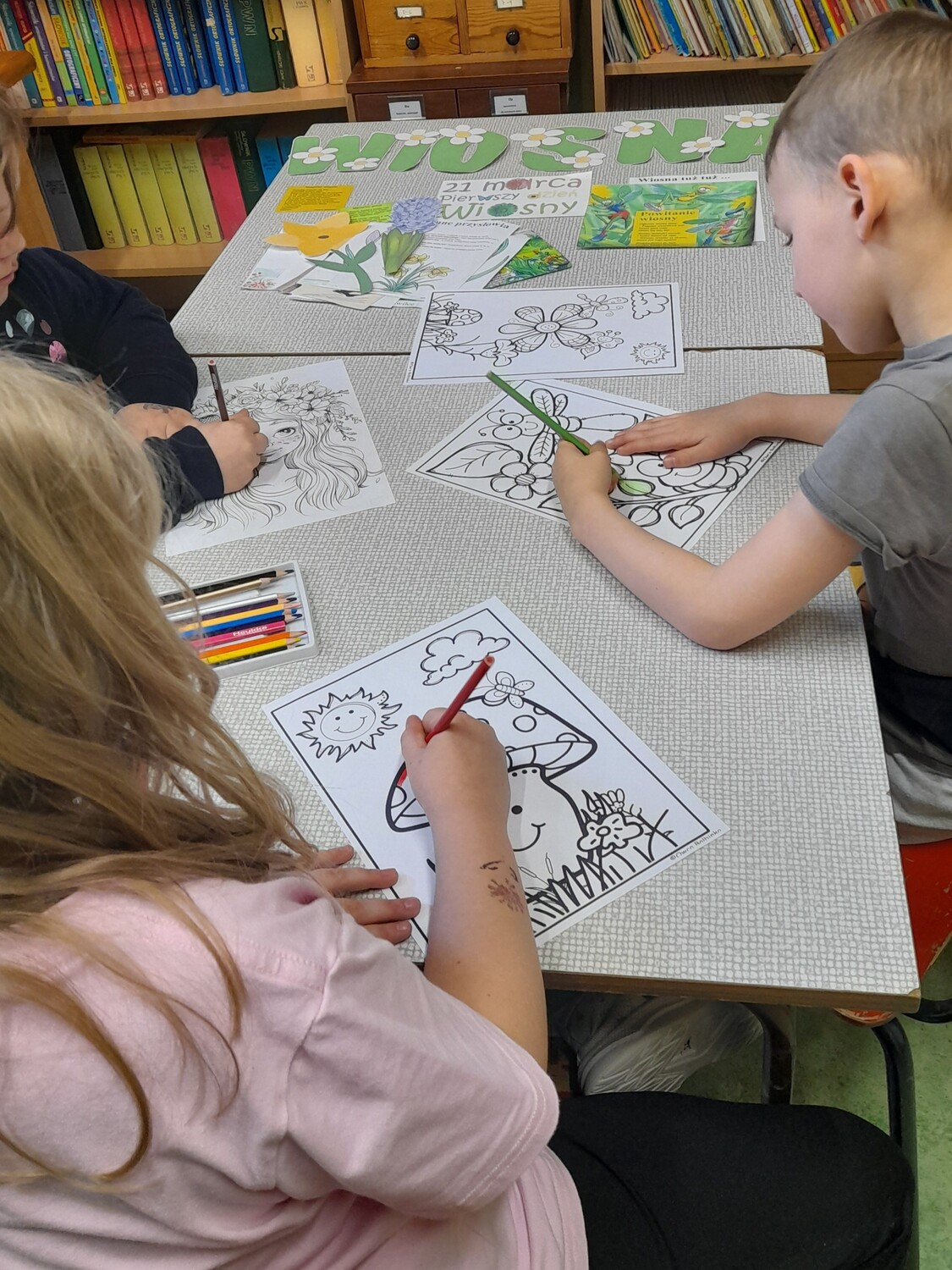 21 marca biblioteka szkolna, we współpracy z nauczycielami świetlicy, zorganizowała wyjątkowe zajęcia czytelnicze oraz plastyczne. Ich celem było przybliżenie uczniom symboli wiosny oraz rozbudzenie ich zainteresowania otaczającą przyrodą i zwyczajami związanymi z tą porą roku.