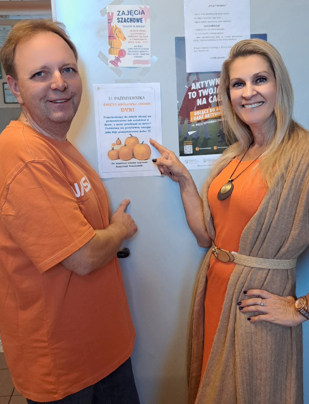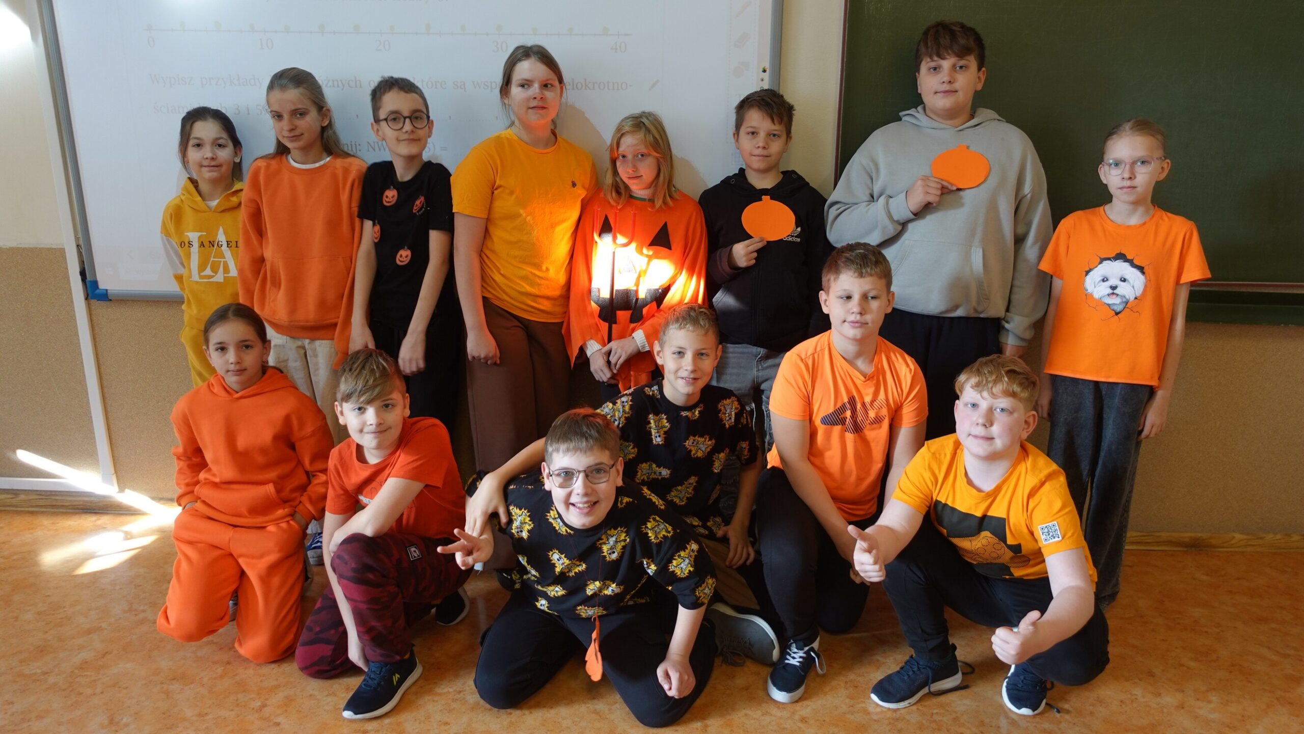 31 października w naszej szkole zrobiło się wyjątkowo pomarańczowo i radośnie, ponieważ obchodziliśmy Dzień Dyni – jedno z najbardziej kolorowych i wesołych wydarzeń jesieni! Tego dnia uczniowie przyszli ubrani w stroje w odcieniach pomarańczu, a szkolne korytarze zamieniły się w prawdziwe dyniowe królestwo. Można było zobaczyć pomarańczowe koszulki, czapki, spódniczki, a nawet zabawne przebrania inspirowane jesienią i oczywiście – dyniami!