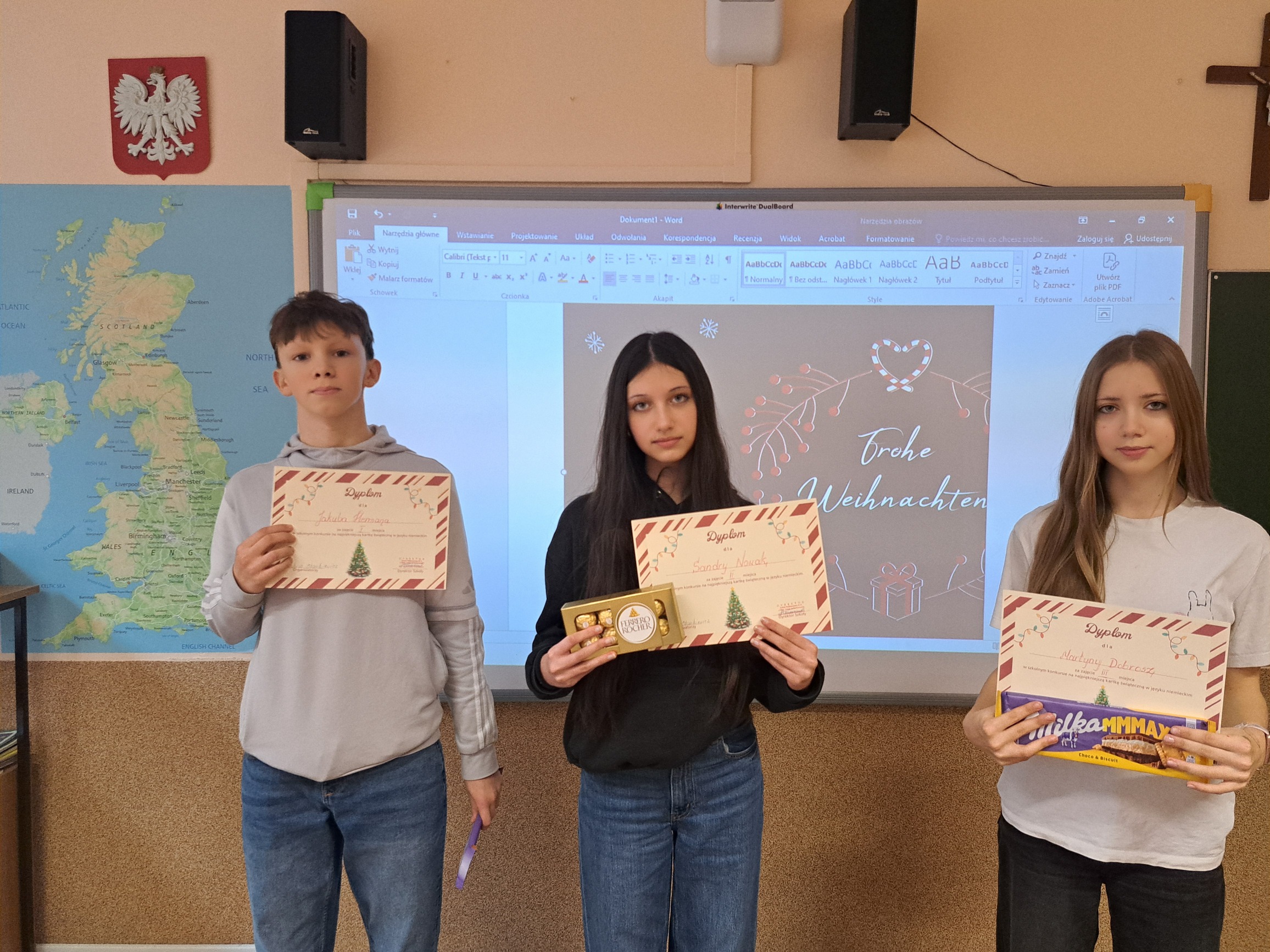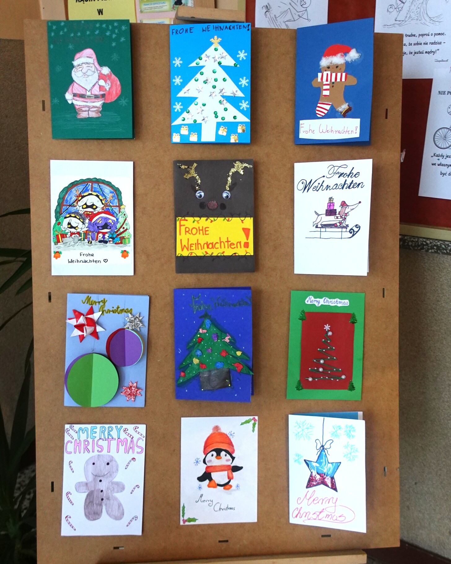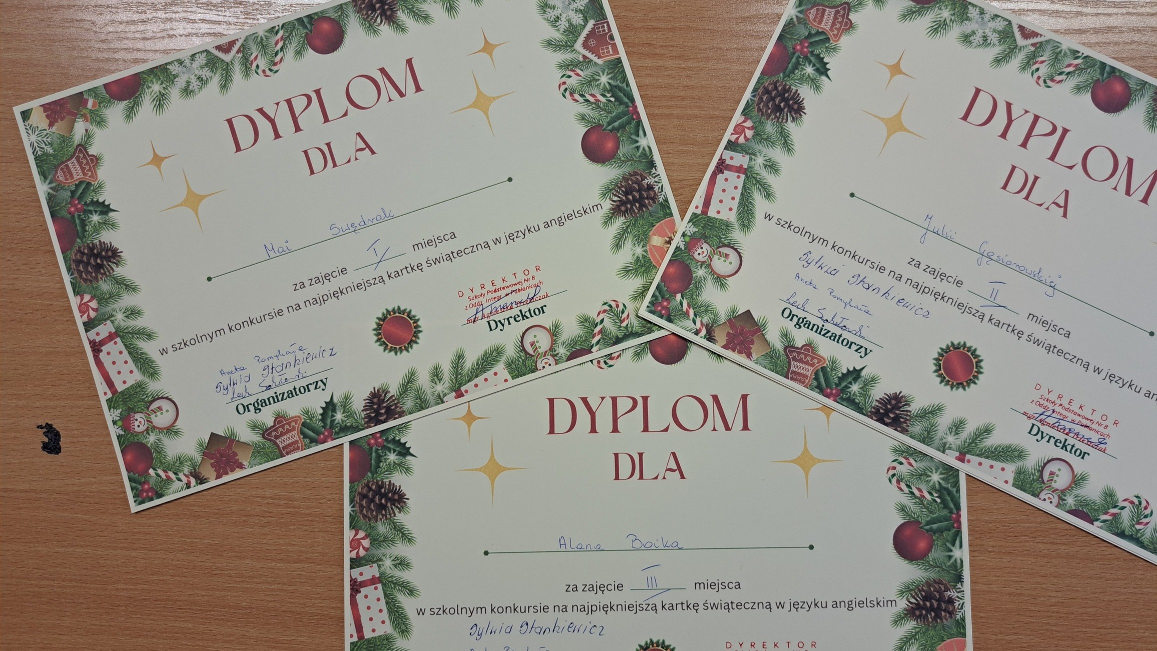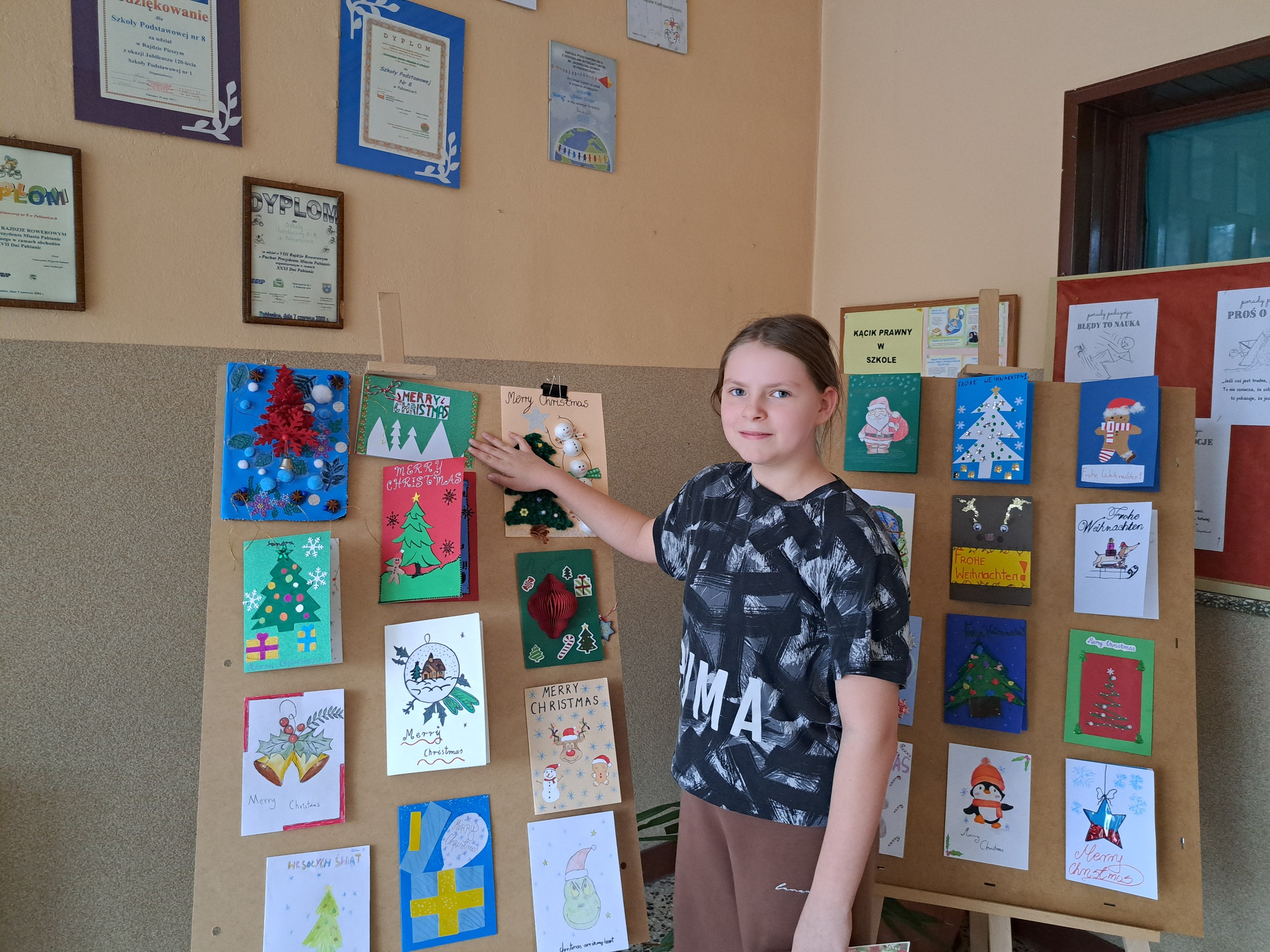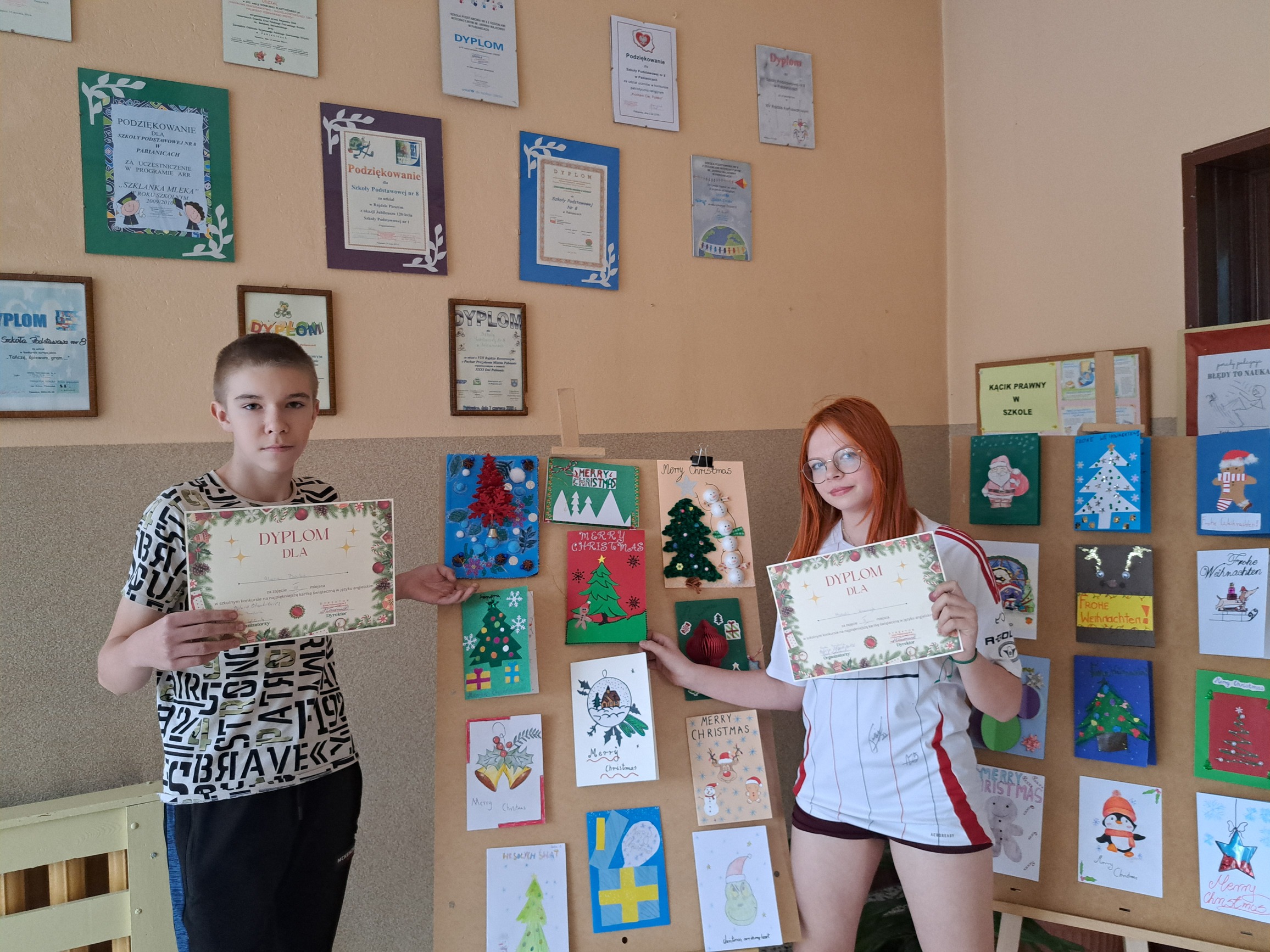 W konkursie na kartkę świąteczną, trwającym od 1 grudnia, wzięło udział 40 uczniów klas I–VIII. Uczestnicy wykazali się dużą kreatywnością oraz starannością w wykonaniu prac, za co serdecznie dziękujemy wszystkim biorącym udział w konkursie.