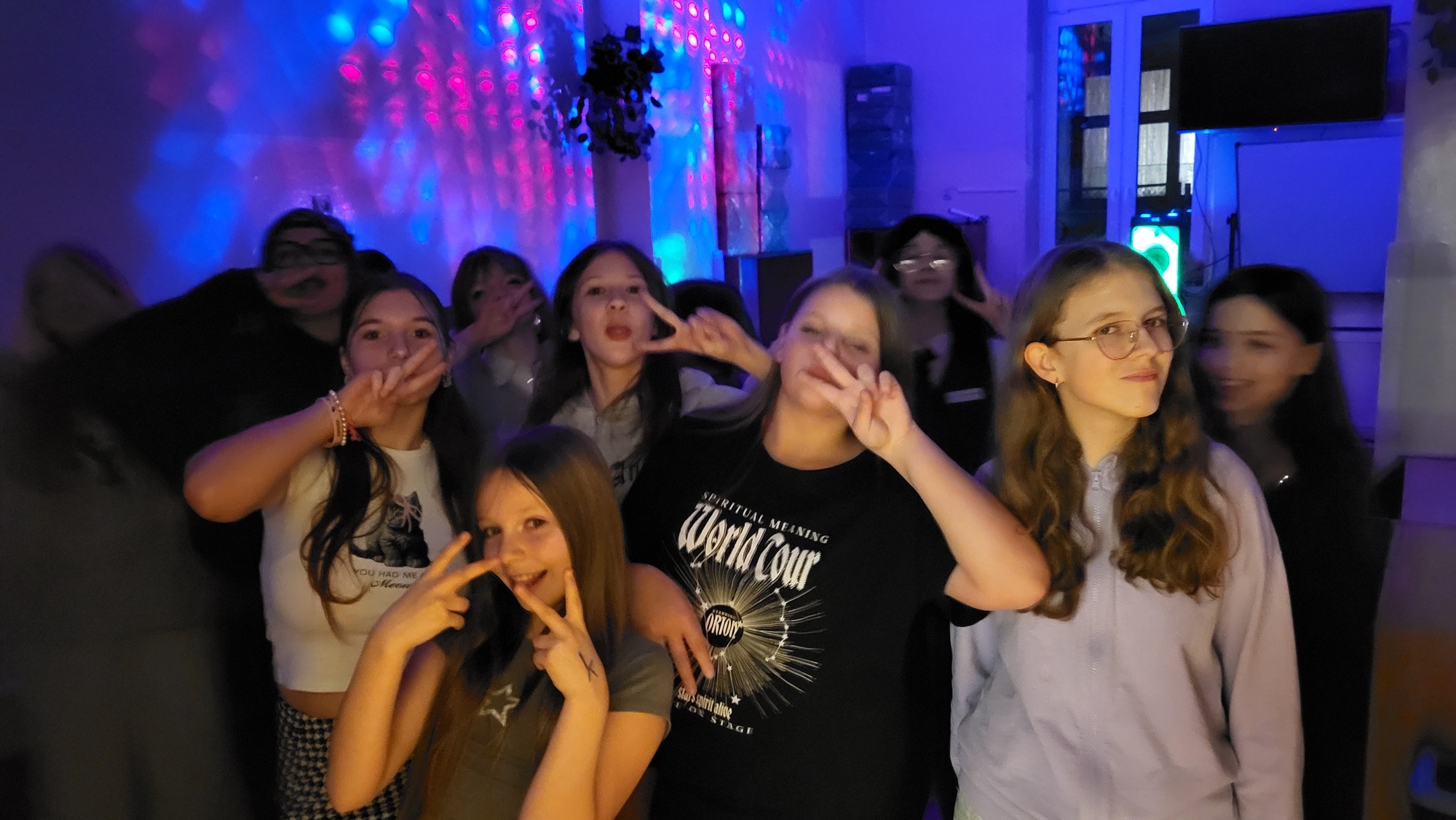 28 listopada w naszej szkole odbyła się dyskoteka, która trwała od godziny 17:00 do 19:00. Podczas wydarzenia uczniowie brali udział w różnych konkurencjach i zabawach, takich jak limbo, krzesełka czy gorący ziemniak. W wyzwaniach można było zdobyć słodkie nagrody, co dodatkowo podkręcało emocje!