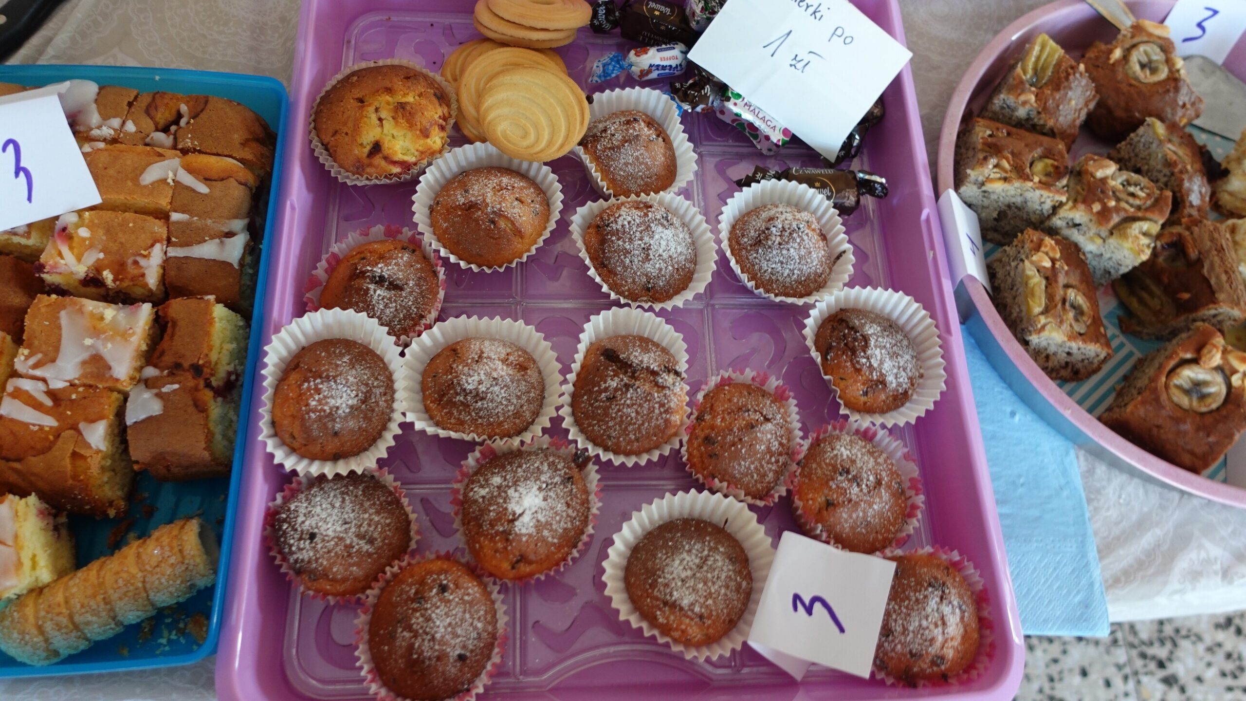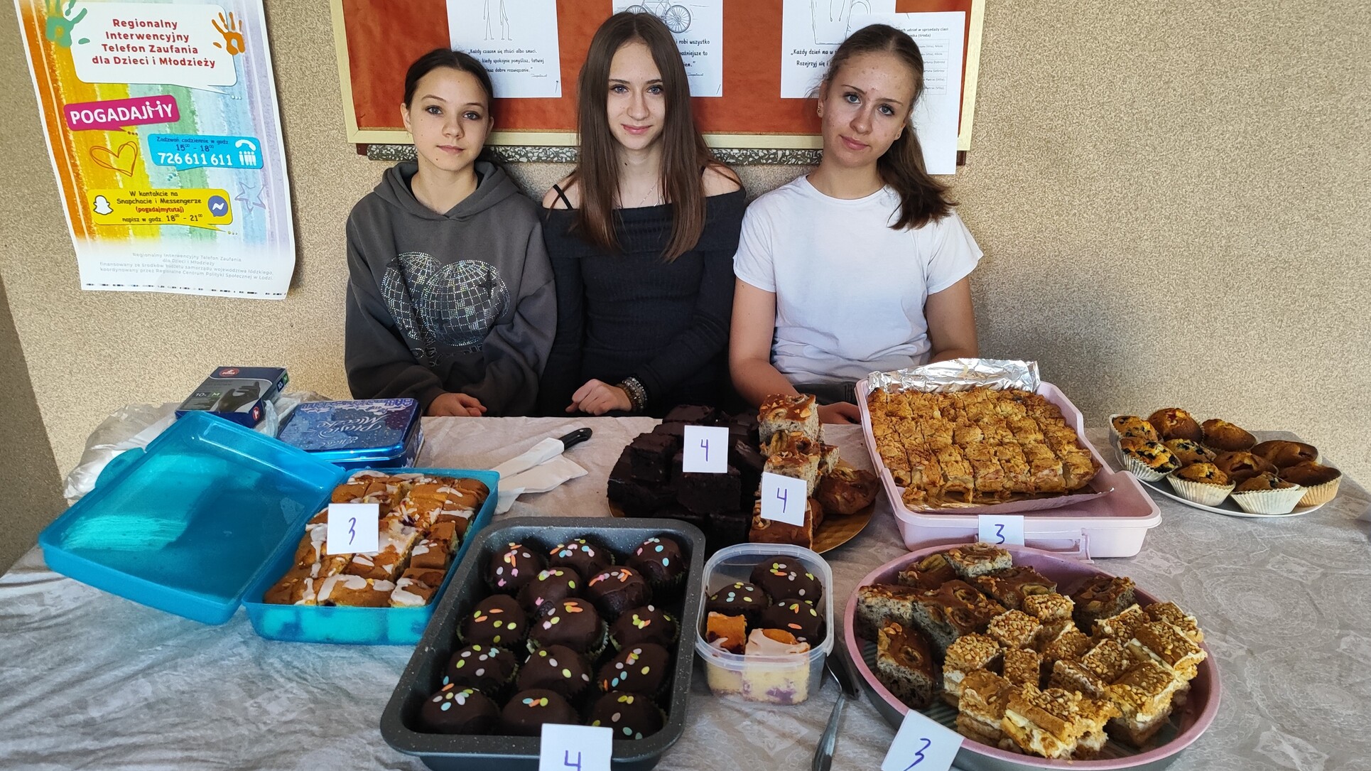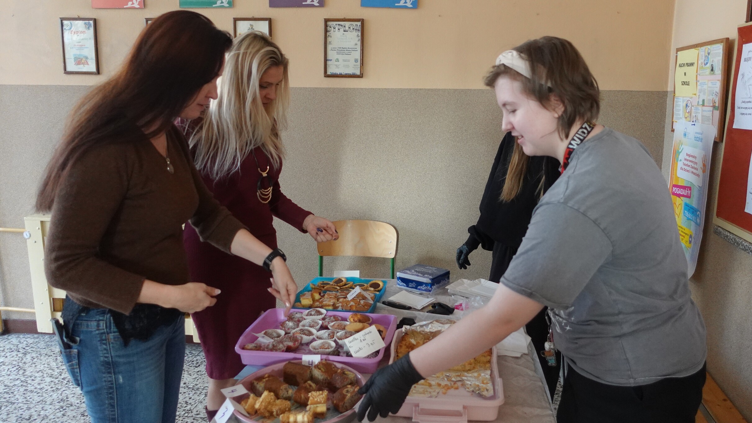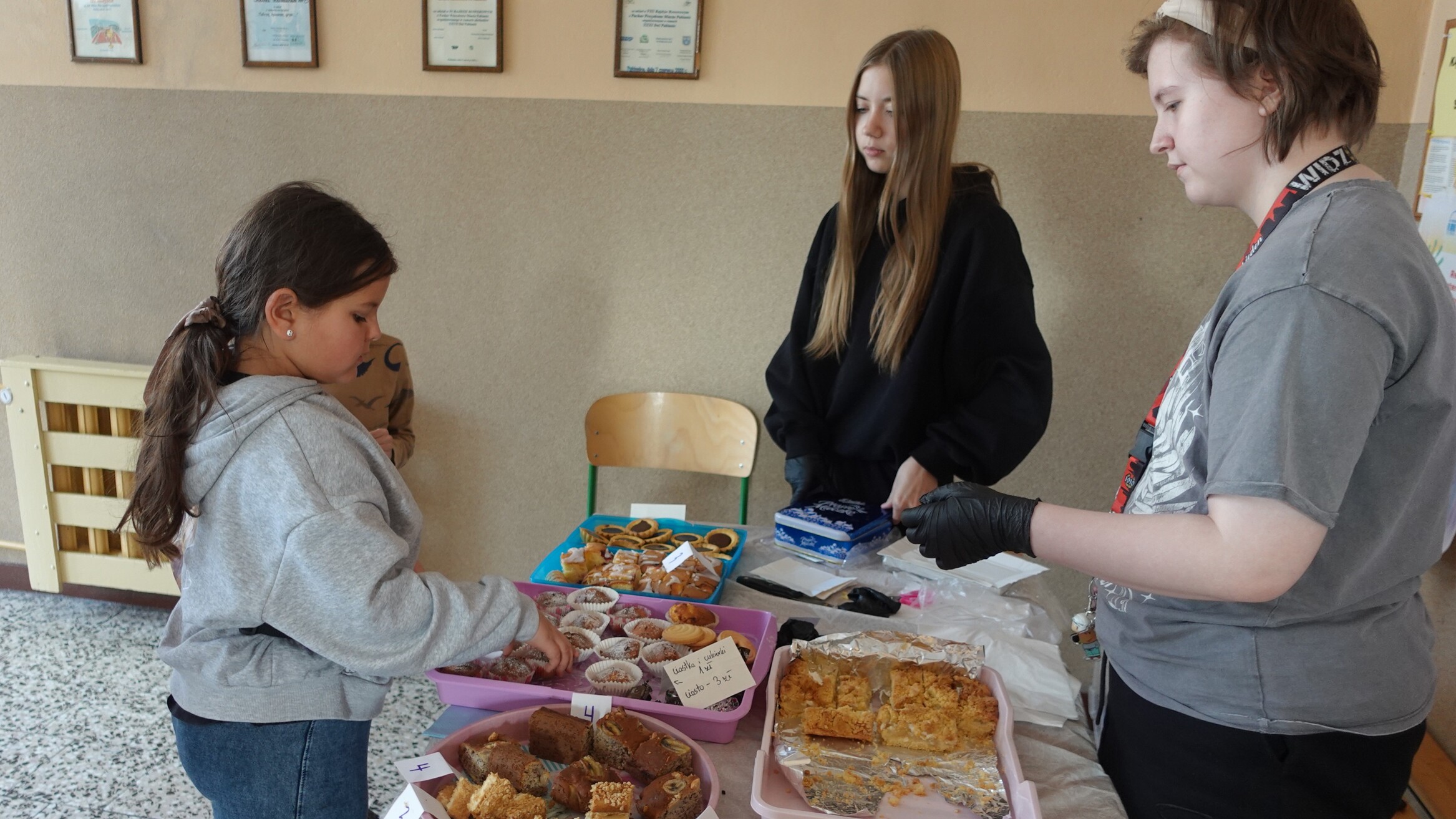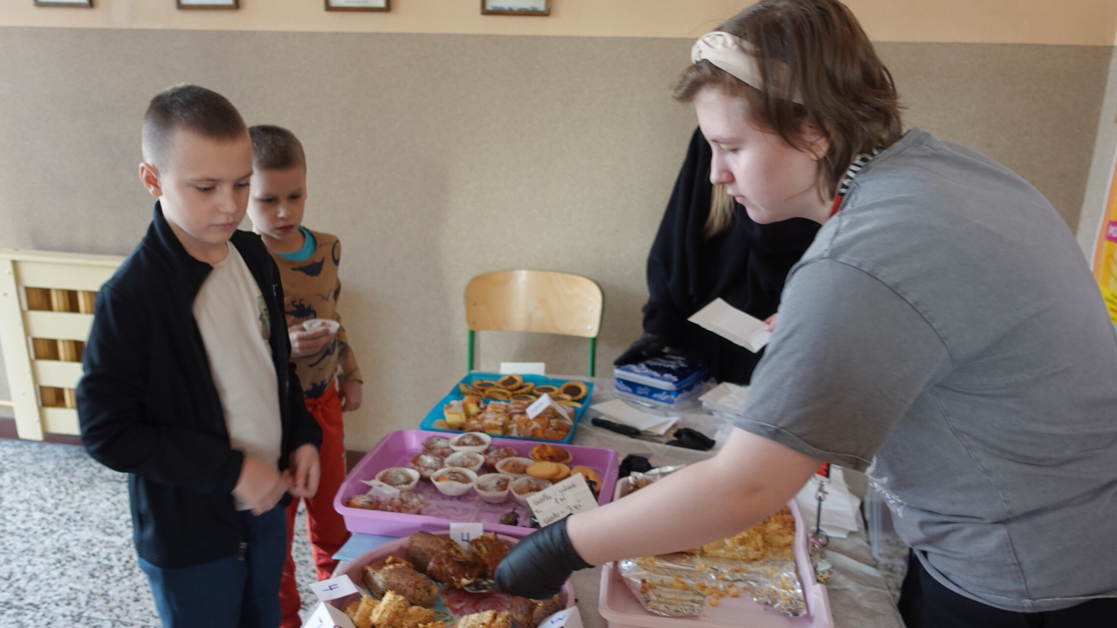 Wszystkie wypieki cieszyły się ogromnym powodzeniem – szkolny korytarz wypełnił się zapachem słodkości, uśmiechami i radością pomagania.