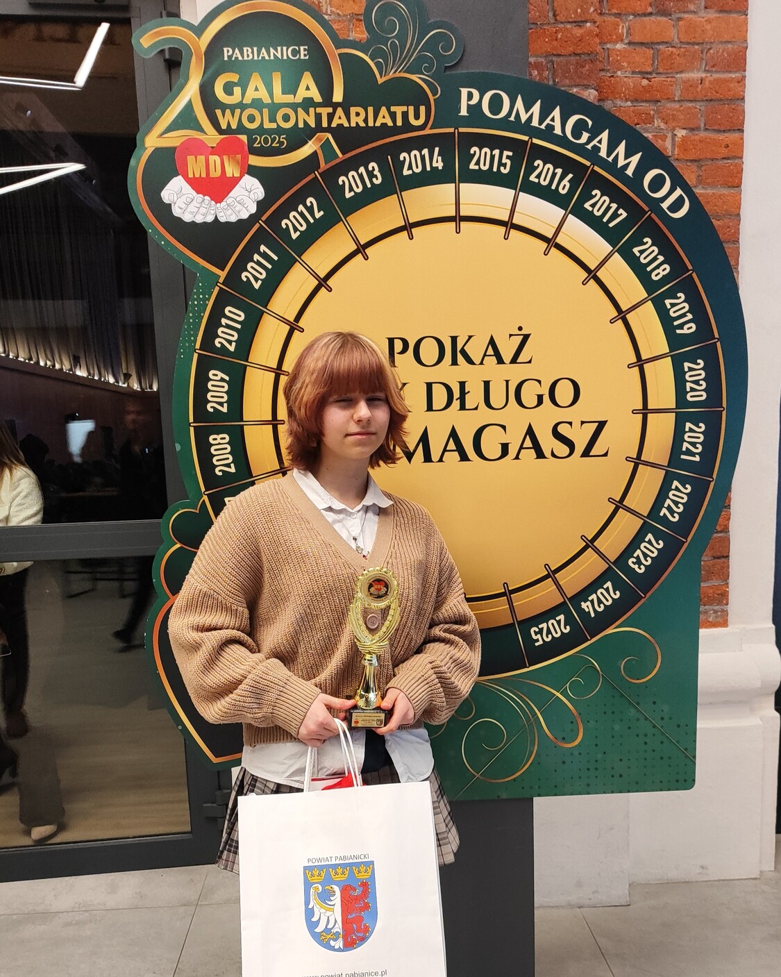 W miesiącu grudniu uczennica naszej szkoły – Alicja Szwarczewska (klasa VIIIa) – została wyróżniona w konkursie „Pomocni”. Podczas XX Gali Wolontariatu Powiatu Pabianickiego odebrała z rąk organizatorów statuetkę  „Agrafki” oraz pamiątkowy dyplom. Celem tego wyróżnienia  jest podkreślenie roli wolontariuszy w życiu lokalnej społeczności. Serdecznie gratulujemy!