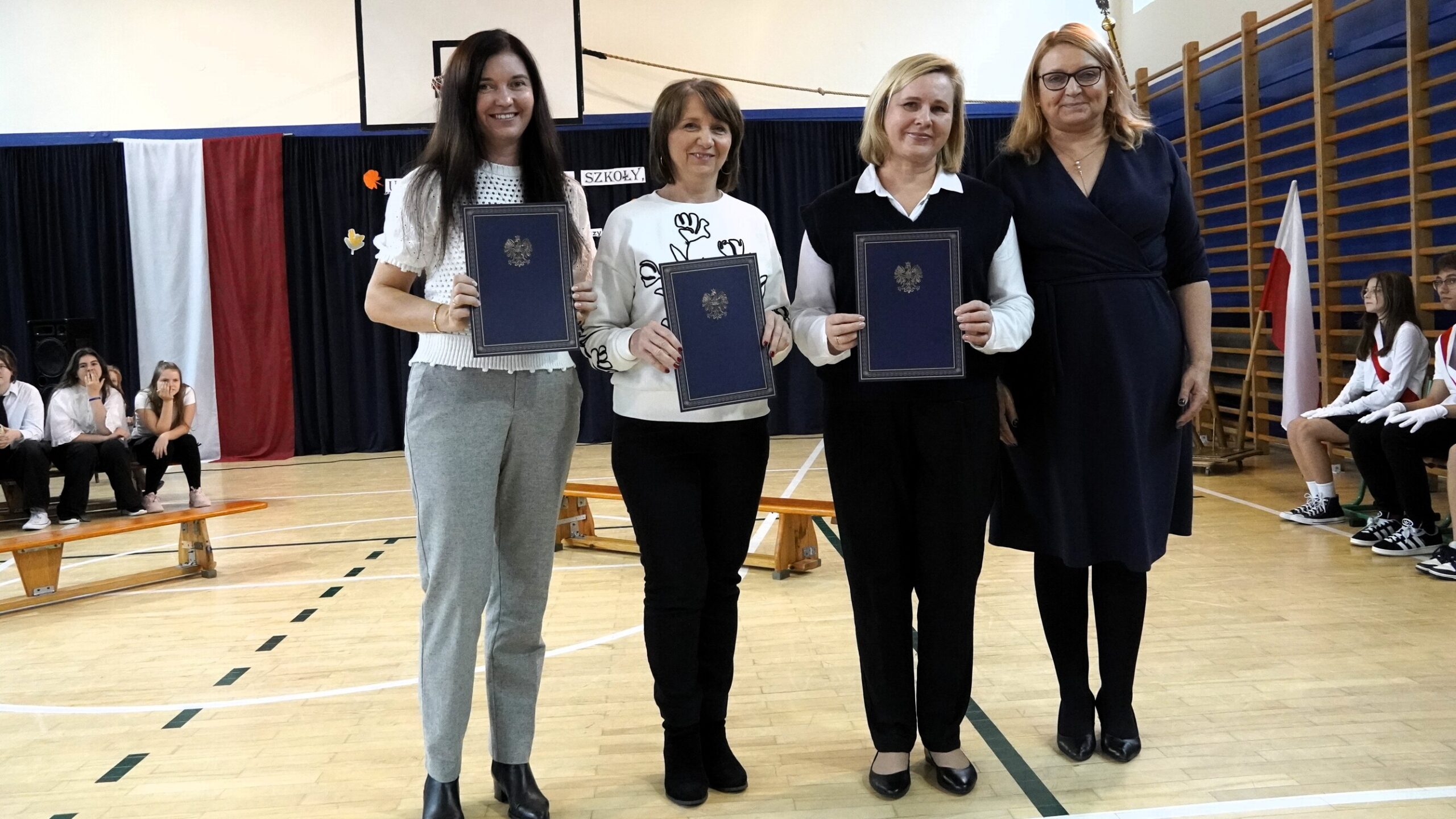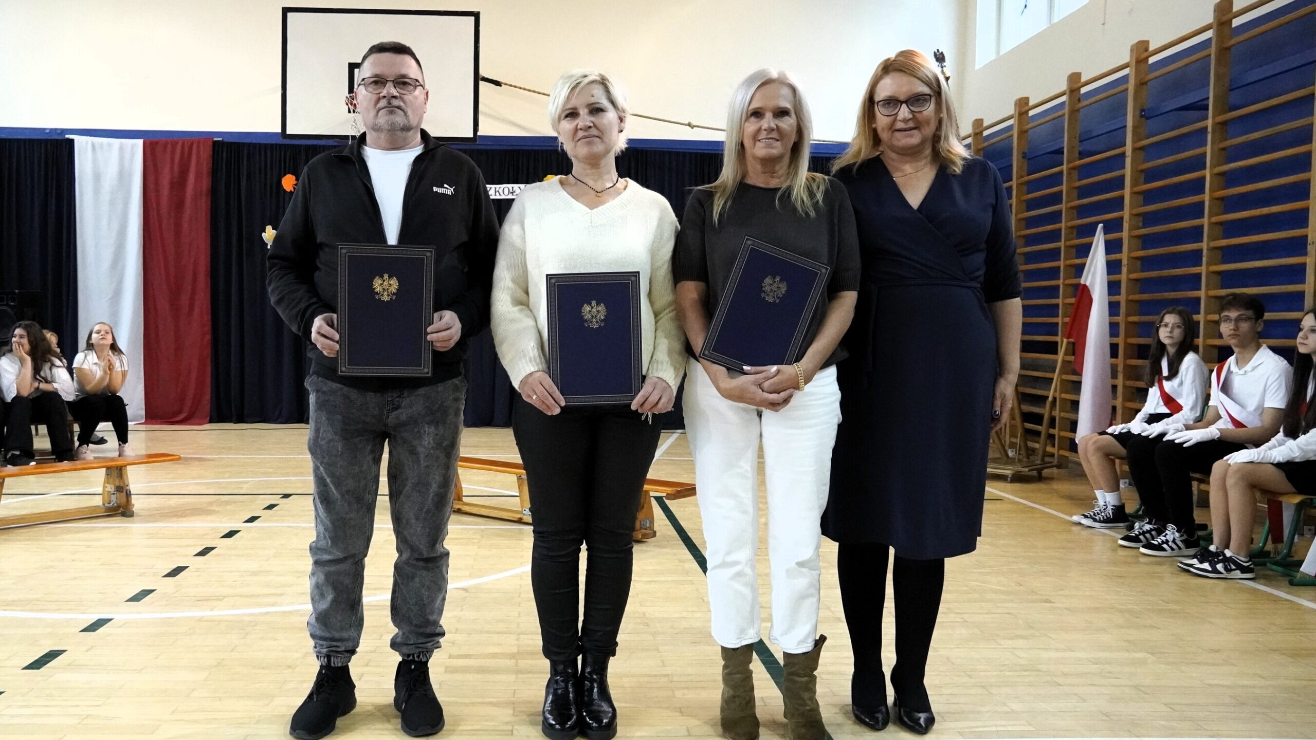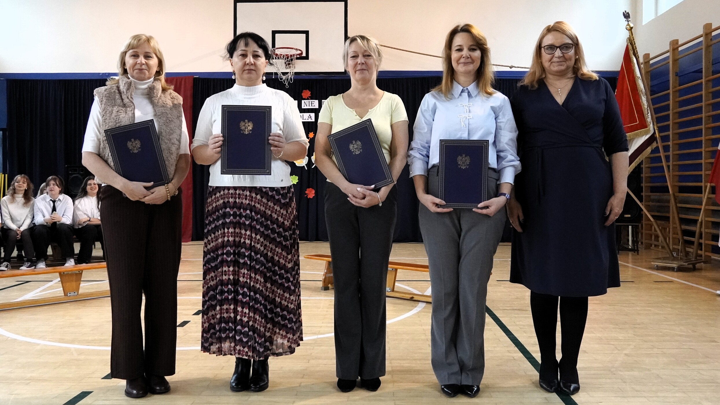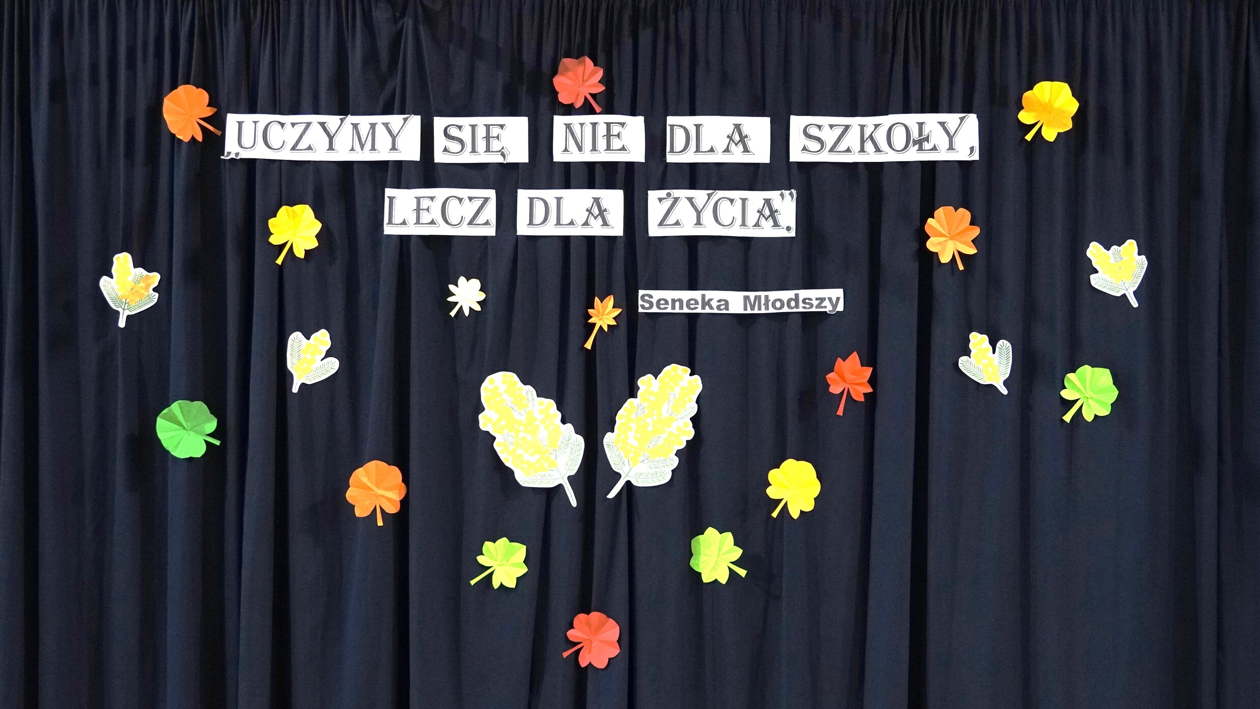 W każdym młodym człowieku żyje nadzieja, że w swym życiu spotka kogoś, kto natchnie go wiarą w to, że stanie się tym, kim może i pragnie być – takimi słowami rozpoczęto uroczystą akademię, podczas której Pani Dyrektor Agnieszka Trzeszczak podziękowała nauczycielom, a także pracownikom administracyjnym – wszystkim, którzy codziennie pracują na rzecz naszej szkoły. Symboliczne podziękowanie za trud nauczania stanowiła część artystyczna, w której uczniowie starszych klas ukazali specyfikę pracy nauczyciela, wcielając się w postaci nieudolnie udające niechęć do edukacji: