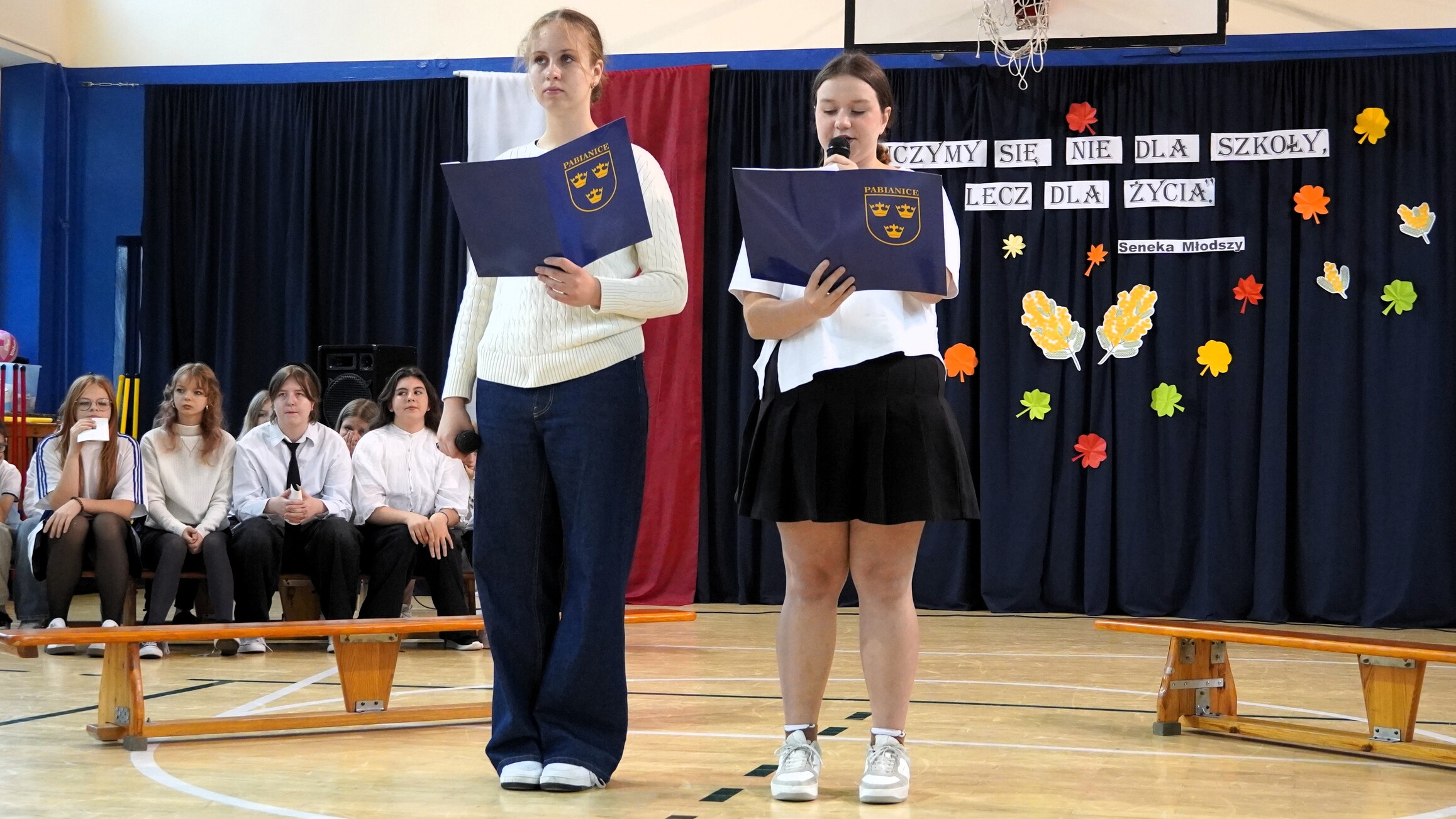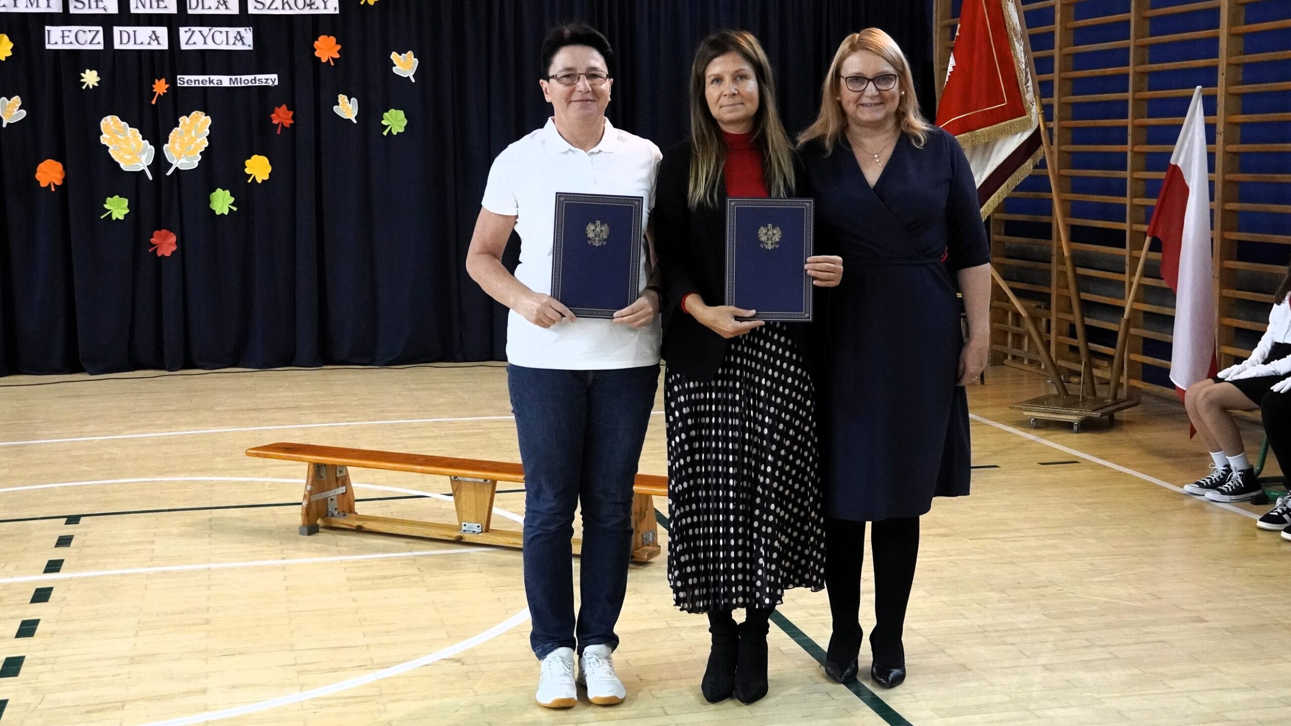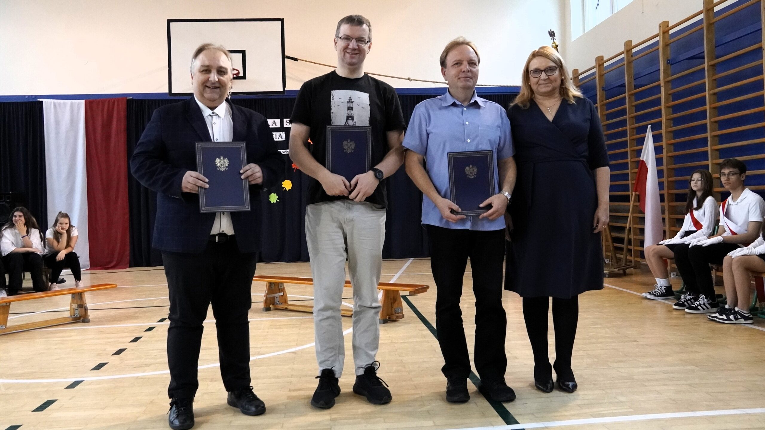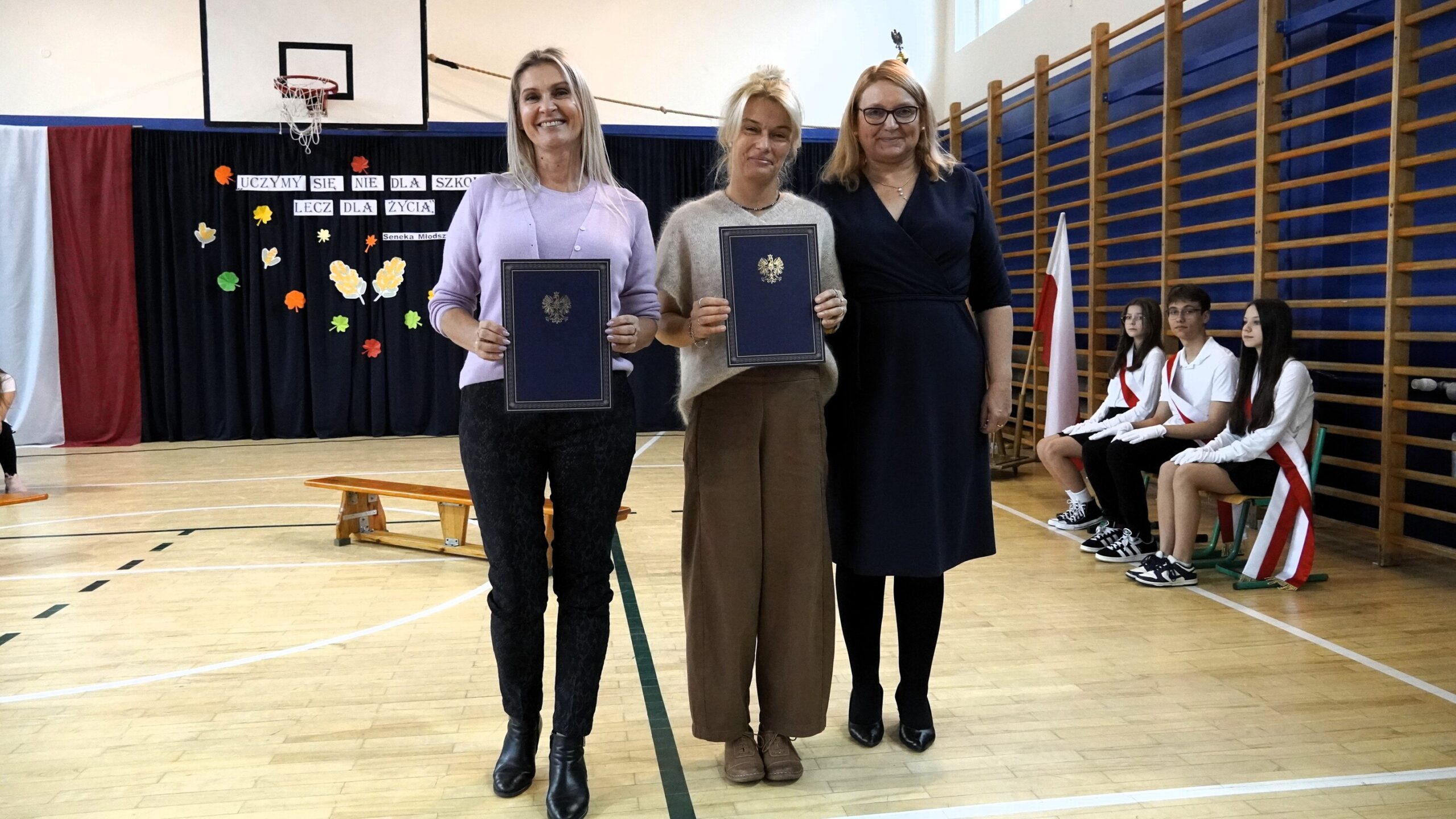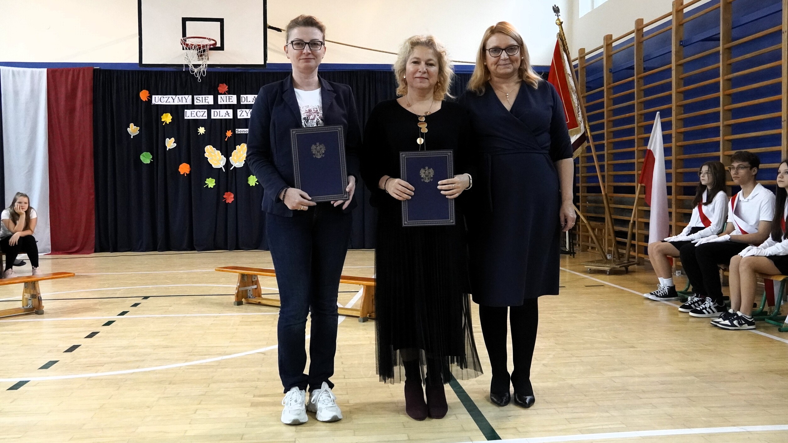 W każdym młodym człowieku żyje nadzieja, że w swym życiu spotka kogoś, kto natchnie go wiarą w to, że stanie się tym, kim może i pragnie być – takimi słowami rozpoczęto uroczystą akademię, podczas której Pani Dyrektor Agnieszka Trzeszczak podziękowała nauczycielom, a także pracownikom administracyjnym – wszystkim, którzy codziennie pracują na rzecz naszej szkoły. Symboliczne podziękowanie za trud nauczania stanowiła część artystyczna, w której uczniowie starszych klas ukazali specyfikę pracy nauczyciela, wcielając się w postaci nieudolnie udające niechęć do edukacji:
