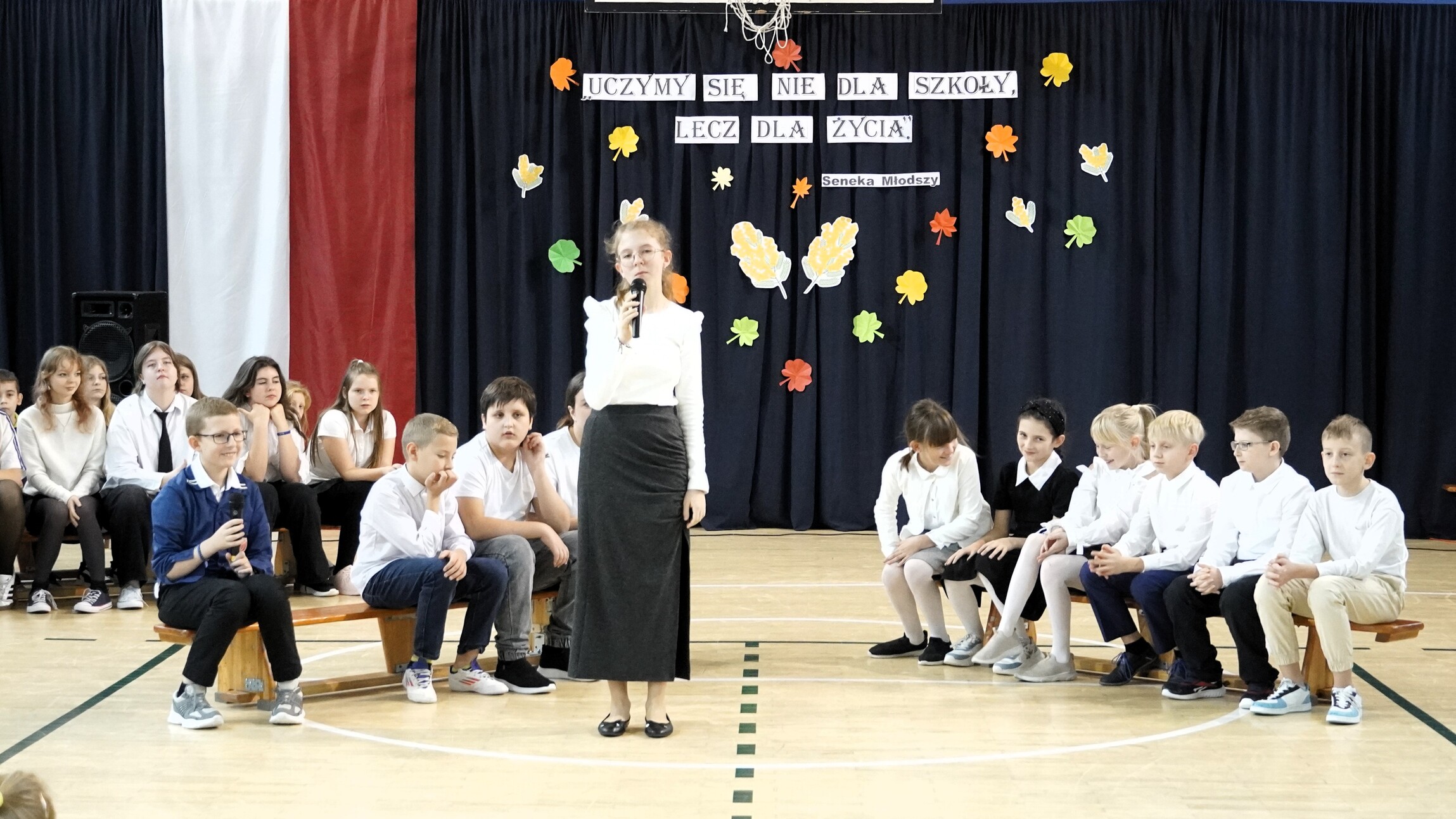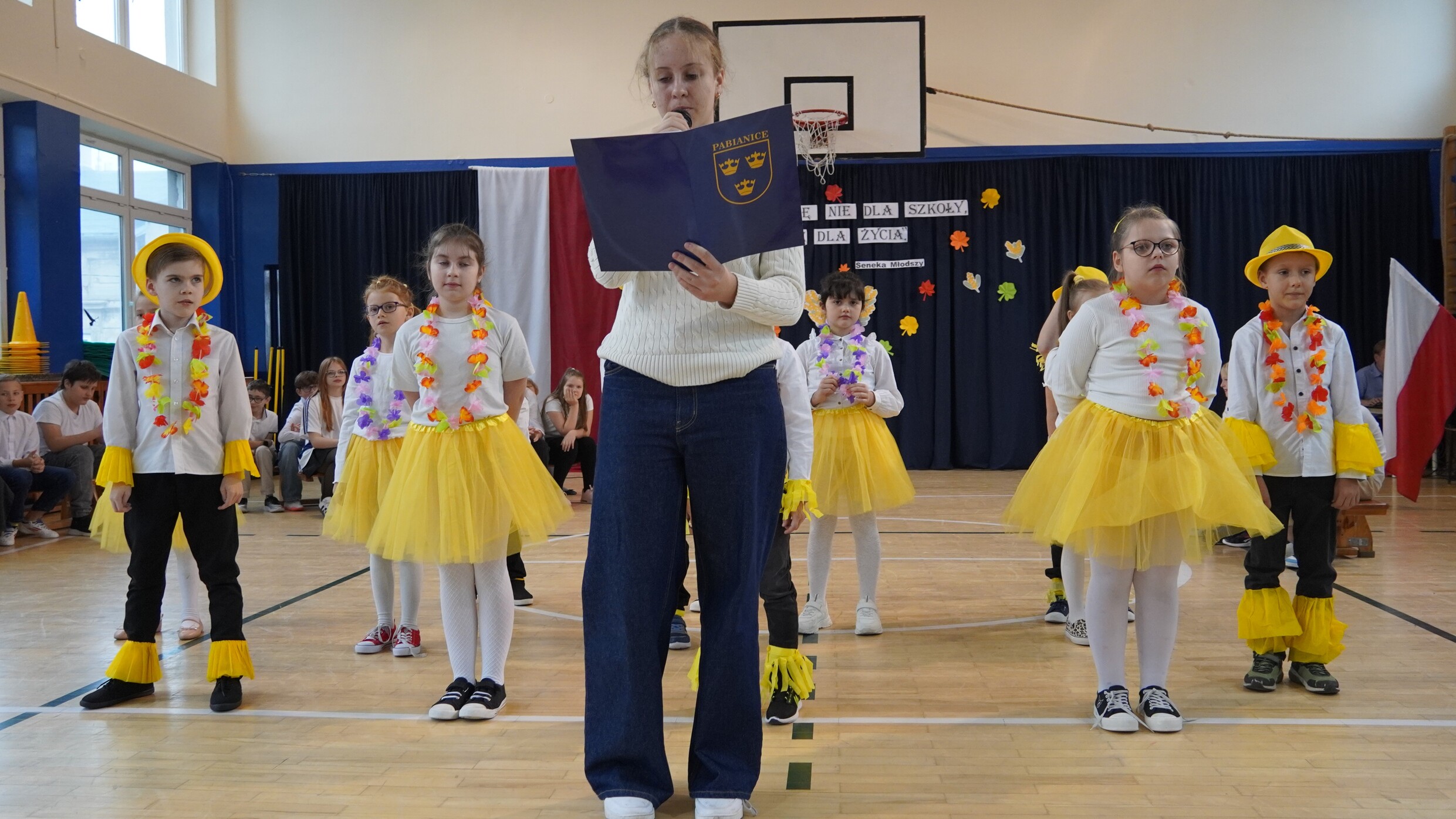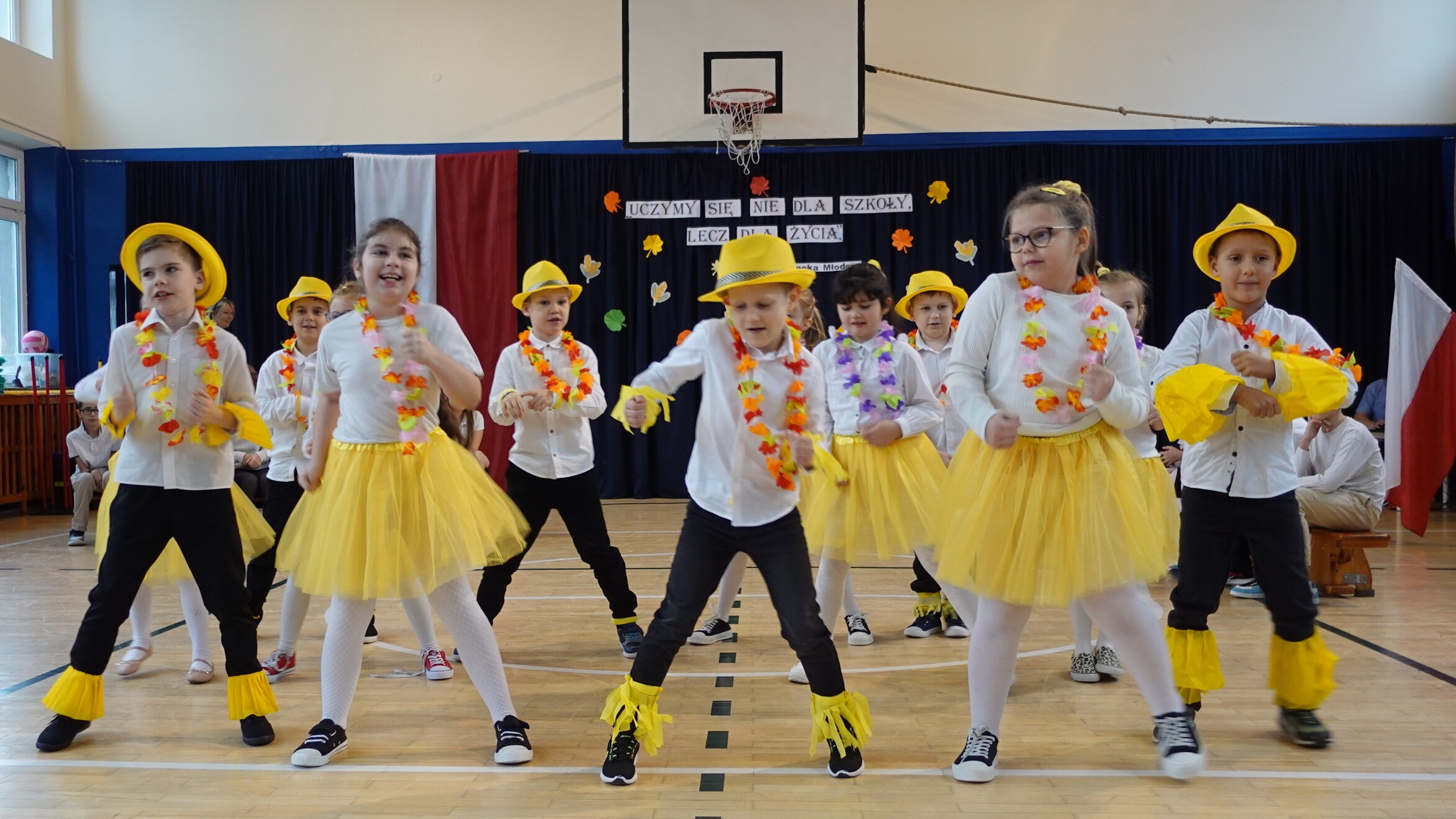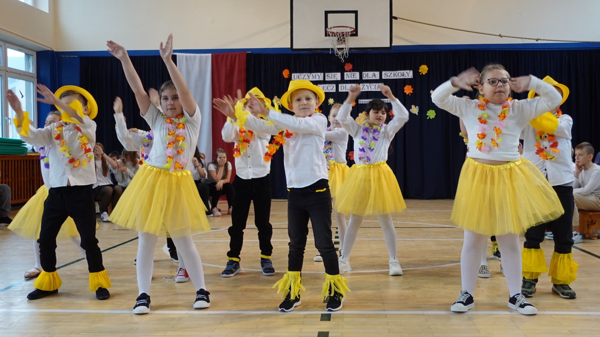 Uczniowie klas młodszych podziękowali nauczycielom, śpiewając i wykonując układ taneczny w rytm samby, która z pewnością dodała wszystkim energii do nauki i pracy na cały rok szkolny!