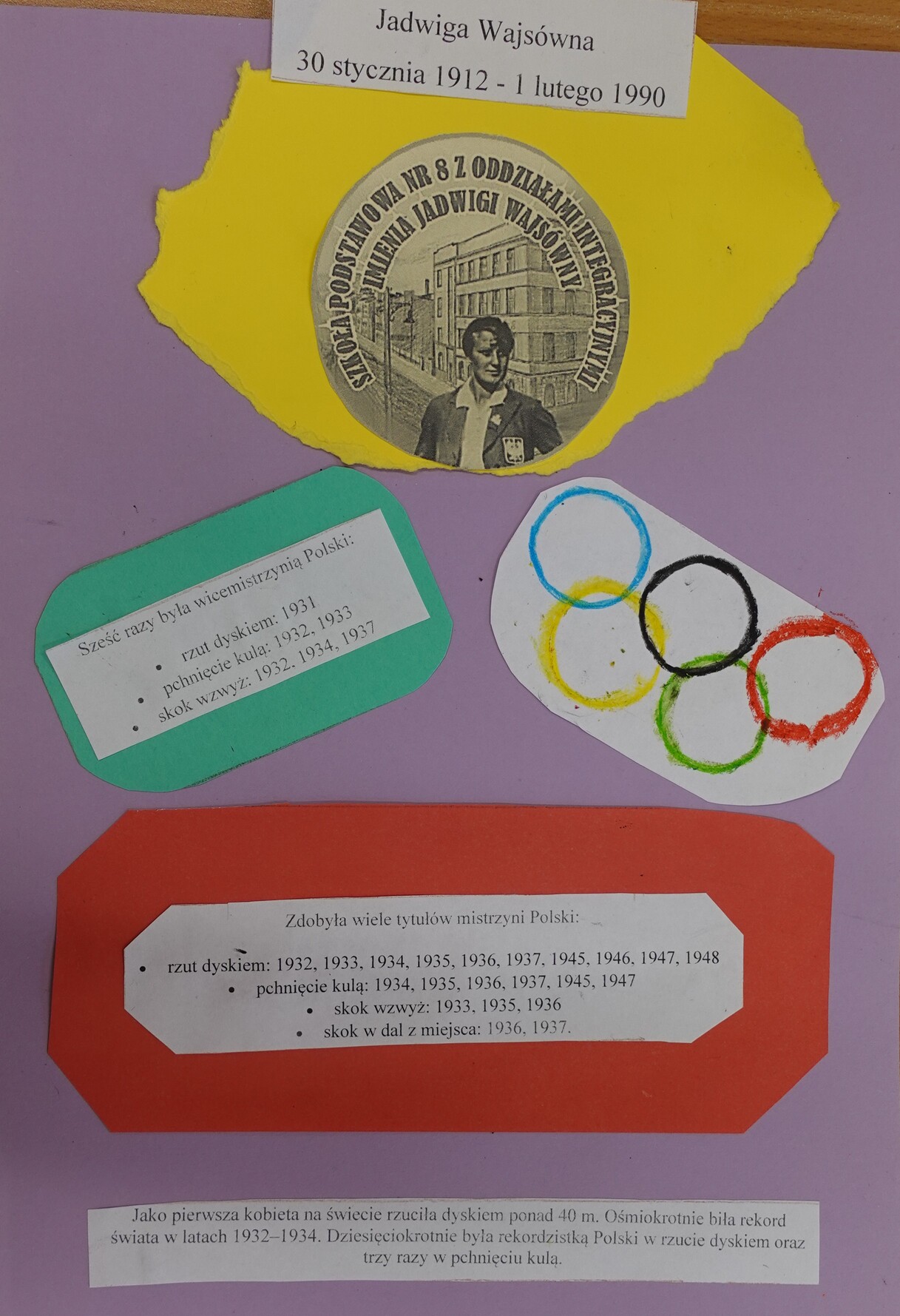 W ramach święta odbył się konkurs „Zgrana Klasa”, skierowany do uczniów klas IV–VIII. Zadaniem każdej klasy było przygotowanie zdrowego i pożywnego śniadania godnego mistrza sportowego, opracowanie projektu medalu olimpijskiego oraz wykonanie gazetki poświęconej pamięci Jadwigi Wajsówny. Uczniowie mogli również sprawdzić się w zadaniu sportowym, polegającym na pokonaniu toru przeszkód z zasłoniętymi oczami, prowadzonym przez kolegę lub koleżankę z klasy.