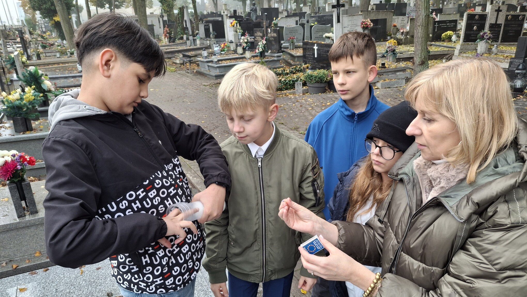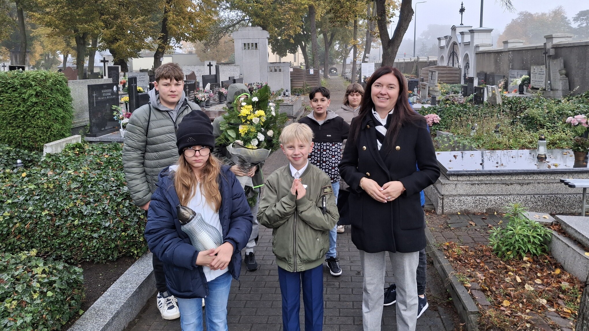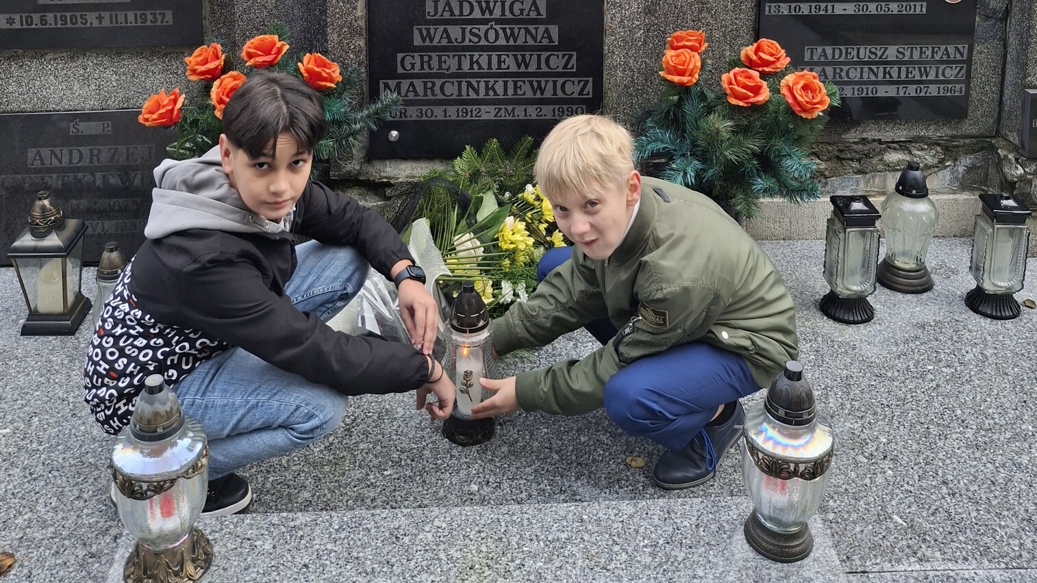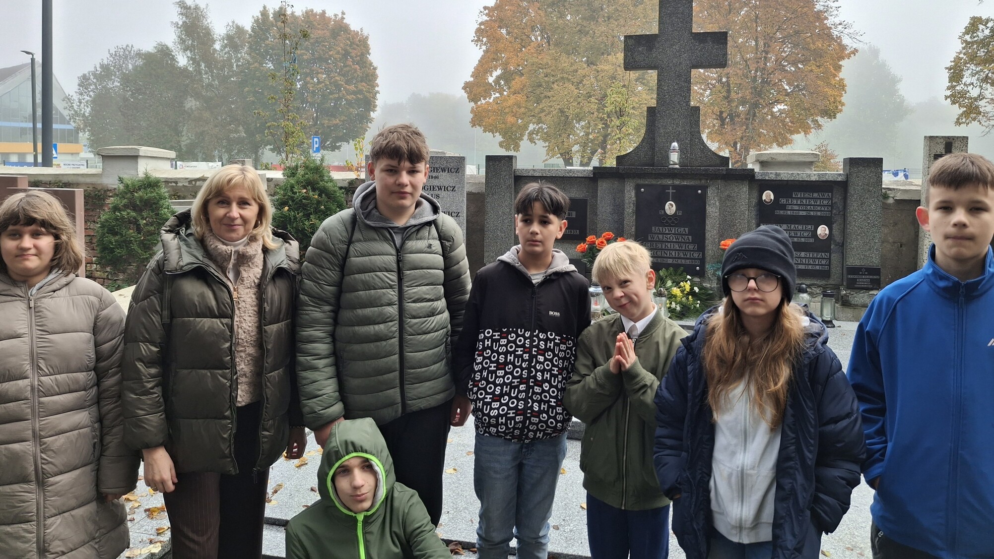 Obchody Dnia Patrona naszej szkoły rozpoczęły się od uroczystego złożenia kwiatów i zapalenia znicza przez delegację uczniów na grobie Jadwigi Wajsówny.