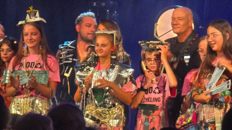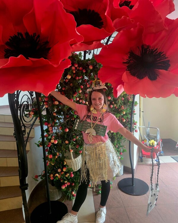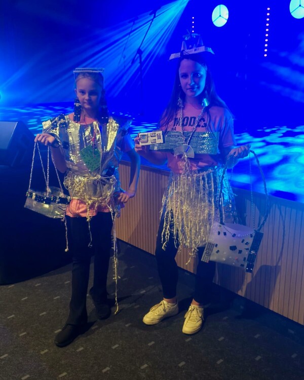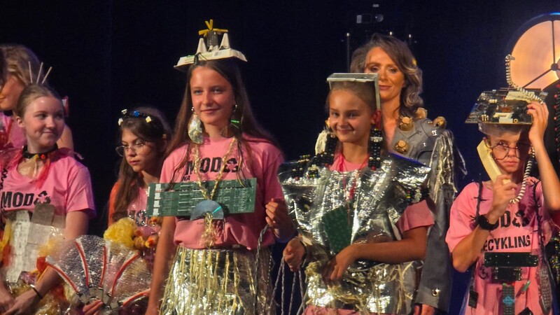 Na scenie naszą szkołę reprezentowała uczennica klasy 7a Julia Sobala, która na pokazie zaprezentowała niezwykłą kreację z elektroodpadów wykonaną przez uczniów klasy 7a. Stylizacja wykonana przez uczniów zyskała ogromne uznanie projektantów mody i została nagrodzona gromkimi brawami.