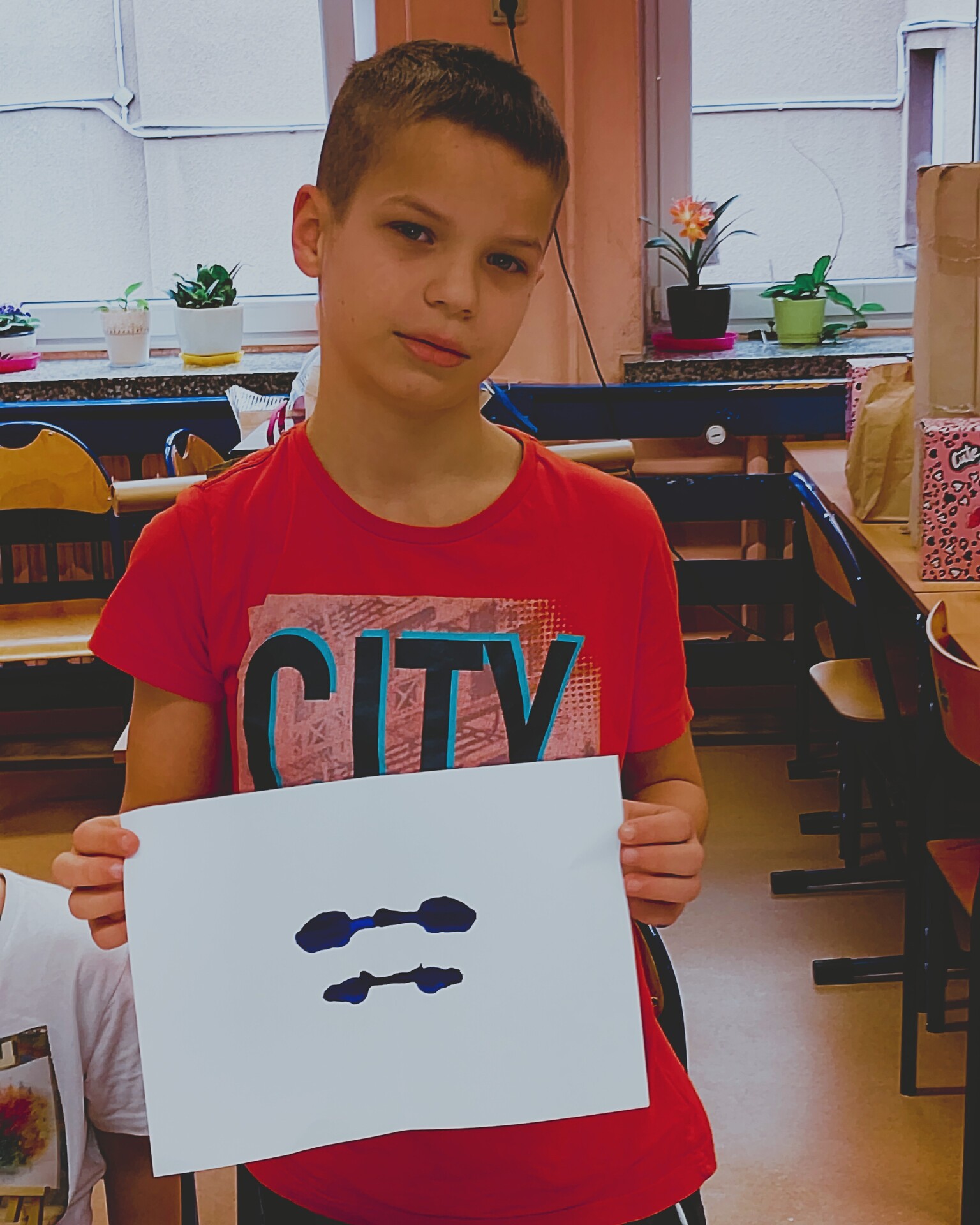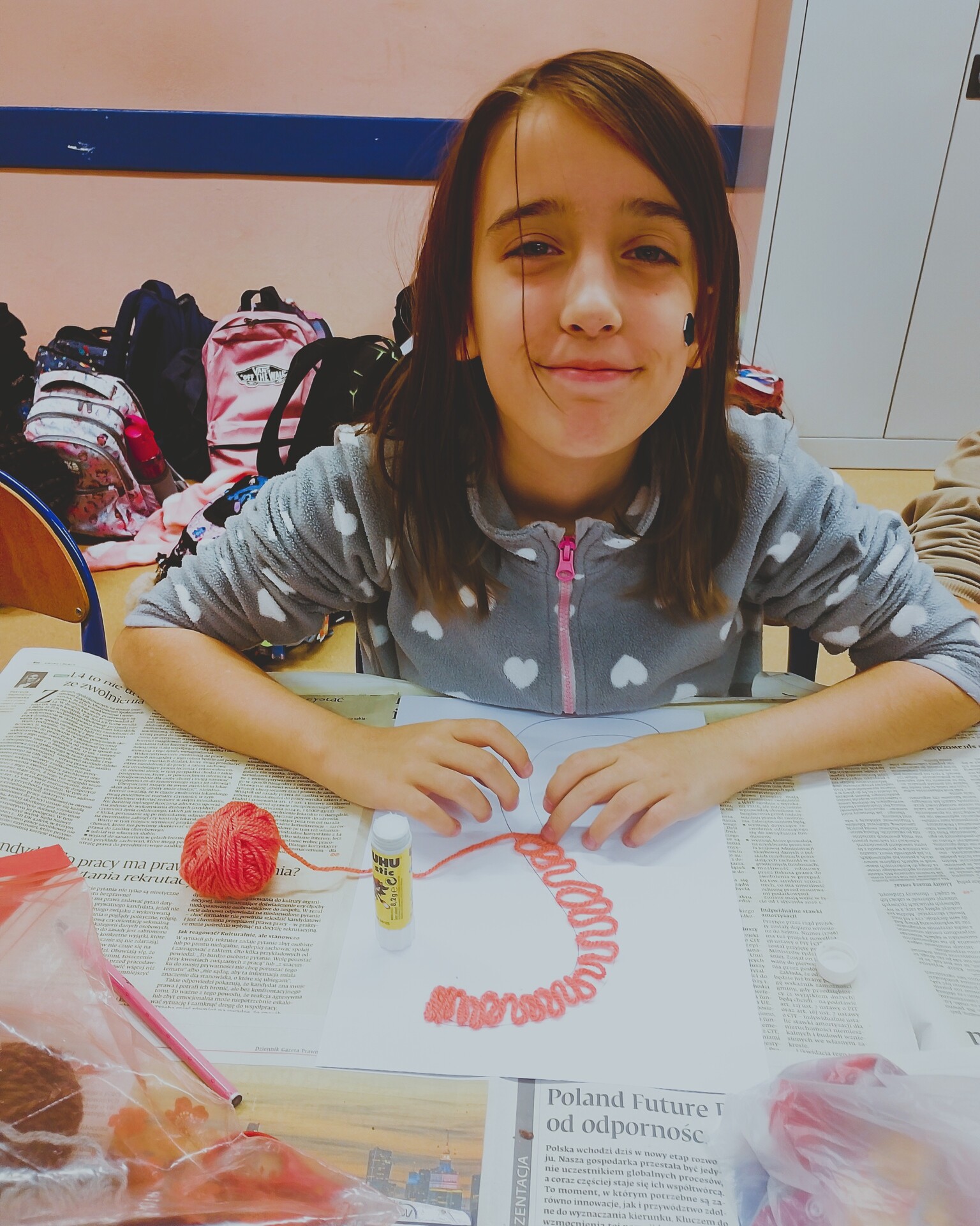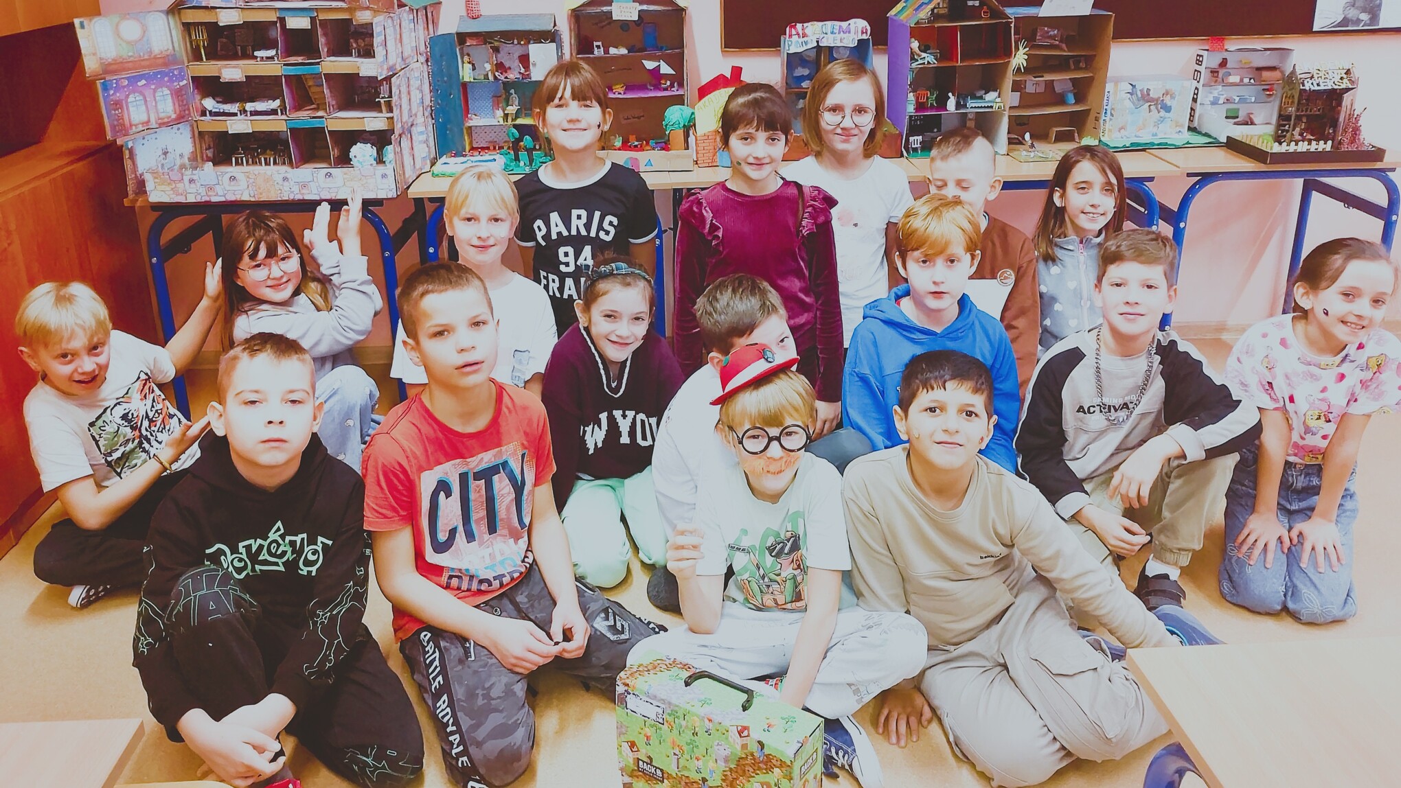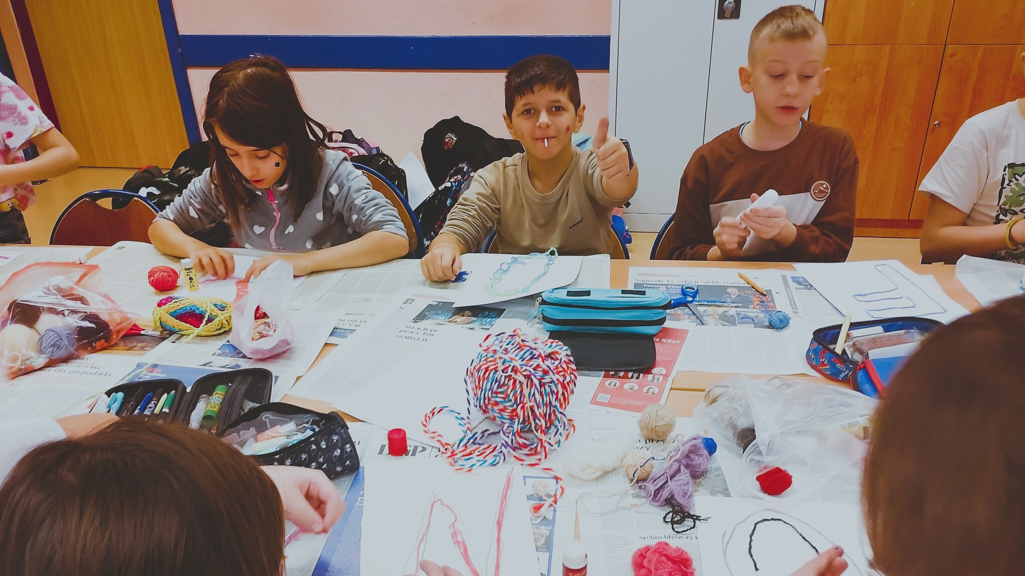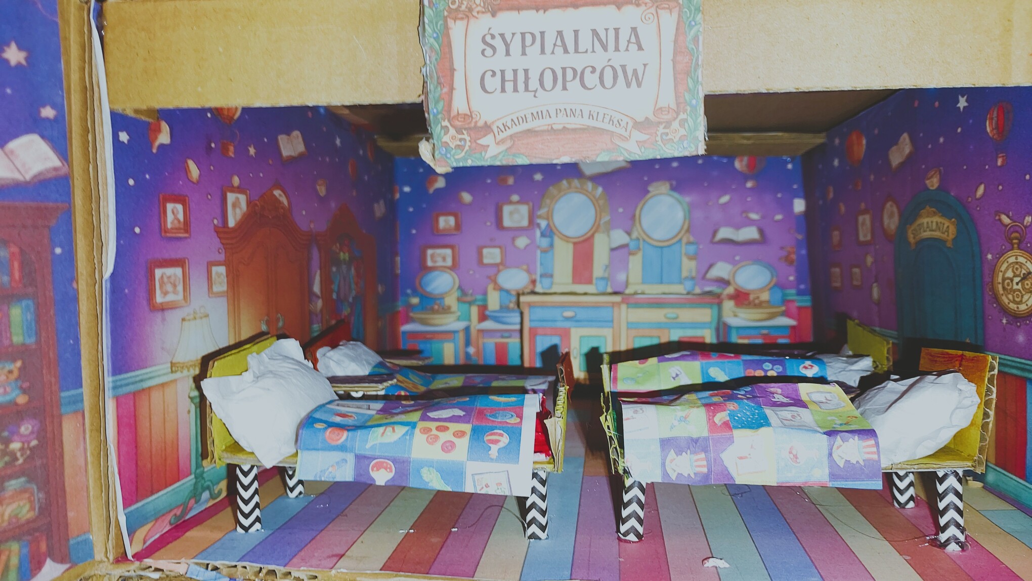 W piątek, 14 listopada odbyła się w naszej szkole niezwykła lekcja języka polskiego. Mając w pamięci omawianą niedawno lekturę, uczniowie klasy 4a postanowili pójść w ślady pana Ambrożego Kleksa i zamiast wertowania podręcznika do literatury wybrali lekcję łączącą elementy kleksografii, przędzenia liter i guzikologii. Niewtajemniczonym lub zapominalskim przypomnijmy, cytując fragment z książki Jana Brzechwy, na czym polegała chociażby lekcja kleksografii: „Kleksografia polega na tym, że na arkuszu papieru robi się kilka kleksów, a potem arkusz składa się na pół i kleksy rozmazują się na papierze, przybierając kształty rozmaitych figur, zwierząt, postaci. Do nich dopisujemy odpowiednie historyjki (…)” ( J. Brzechwa „Akademia pana Kleksa”). Wszyscy uczniowie klasy 4a świetnie się bawili, z radością odkrywając symetrycznie odbite kształty. Wśród nich pojawiły się motyle, mózgi, ryby, ptaki, a nawet egzotyczne kraje i starożytne bóstwa. Następnie uczniowie nadawali tytuły swoim „kleksom – obrazkom” i opisywali je w kliku zdaniach. Wykorzystując różnokolorowe włóczki i wiedzę o lekcji przędzenia liter, wyklejali także inicjały swoich imion. Na koniec sprawdzili umiejętności przyszywania guzików, co okazało się nie lada wyzwaniem! Zajęcia zakończyły eksperymenty z kolorowymi słodyczami, które naśladowały nietypowe upodobania kulinarne osobliwego profesora… Zwieńczenie spotkania z lekturą stanowiły makiety ukazujące budynek akademii: zarówno jego wnętrze, jak i otoczenie. Dzieci wykazały się nie tylko wyjątkową wyobraźnią, ale także zdolnościami plastycznymi i umiejętnościami godnymi pochwały niejednego architekta czy projektanta wnętrz. Serdecznie dziękujemy rodzicom za wsparcie i zaangażowanie w zorganizowanie zajęć. Efekty zarówno lekcji kleksografii, jak i pracy nad makietami akademii możecie podziwiać w galerii poniżej, a od przyszłego poniedziałku także w holu naszej szkoły. Serdecznie zapraszamy!