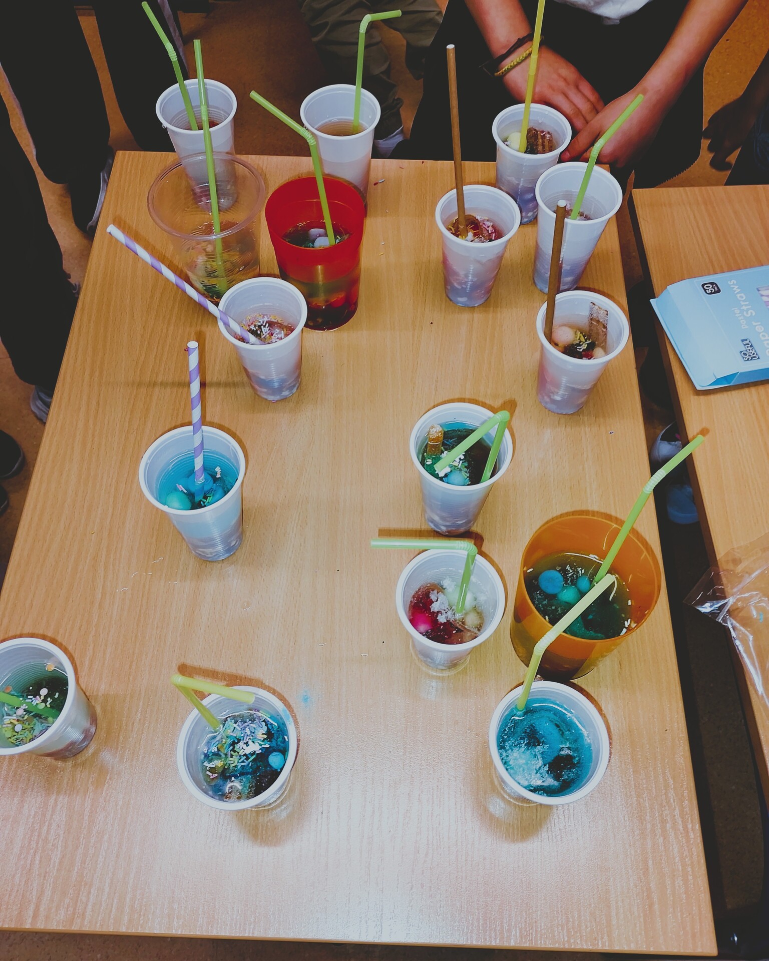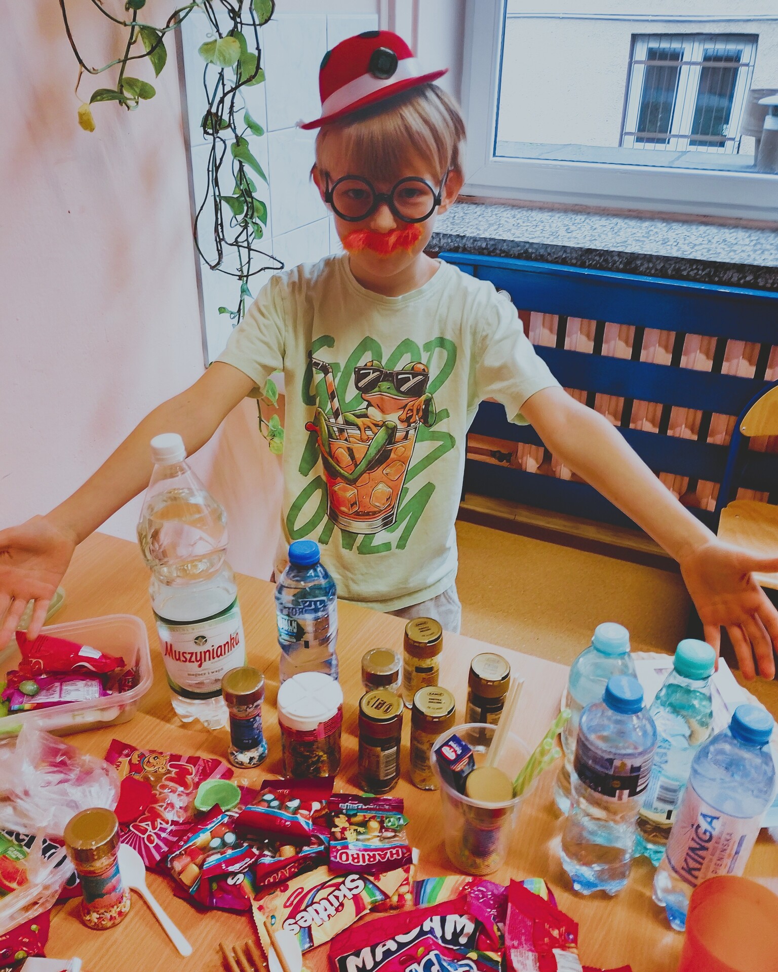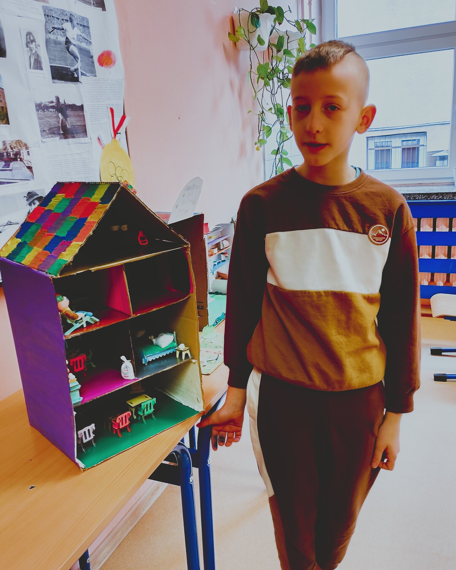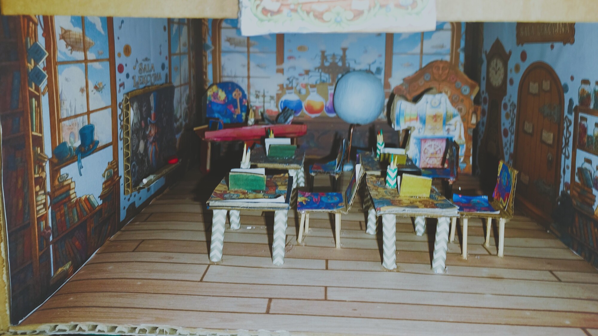 W piątek, 14 listopada odbyła się w naszej szkole niezwykła lekcja języka polskiego. Mając w pamięci omawianą niedawno lekturę, uczniowie klasy 4a postanowili pójść w ślady pana Ambrożego Kleksa i zamiast wertowania podręcznika do literatury wybrali lekcję łączącą elementy kleksografii, przędzenia liter i guzikologii. Niewtajemniczonym lub zapominalskim przypomnijmy, cytując fragment z książki Jana Brzechwy, na czym polegała chociażby lekcja kleksografii: „Kleksografia polega na tym, że na arkuszu papieru robi się kilka kleksów, a potem arkusz składa się na pół i kleksy rozmazują się na papierze, przybierając kształty rozmaitych figur, zwierząt, postaci. Do nich dopisujemy odpowiednie historyjki (…)” ( J. Brzechwa „Akademia pana Kleksa”). Wszyscy uczniowie klasy 4a świetnie się bawili, z radością odkrywając symetrycznie odbite kształty. Wśród nich pojawiły się motyle, mózgi, ryby, ptaki, a nawet egzotyczne kraje i starożytne bóstwa. Następnie uczniowie nadawali tytuły swoim „kleksom – obrazkom” i opisywali je w kliku zdaniach. Wykorzystując różnokolorowe włóczki i wiedzę o lekcji przędzenia liter, wyklejali także inicjały swoich imion. Na koniec sprawdzili umiejętności przyszywania guzików, co okazało się nie lada wyzwaniem! Zajęcia zakończyły eksperymenty z kolorowymi słodyczami, które naśladowały nietypowe upodobania kulinarne osobliwego profesora… Zwieńczenie spotkania z lekturą stanowiły makiety ukazujące budynek akademii: zarówno jego wnętrze, jak i otoczenie. Dzieci wykazały się nie tylko wyjątkową wyobraźnią, ale także zdolnościami plastycznymi i umiejętnościami godnymi pochwały niejednego architekta czy projektanta wnętrz. Serdecznie dziękujemy rodzicom za wsparcie i zaangażowanie w zorganizowanie zajęć. Efekty zarówno lekcji kleksografii, jak i pracy nad makietami akademii możecie podziwiać w galerii poniżej, a od przyszłego poniedziałku także w holu naszej szkoły. Serdecznie zapraszamy!