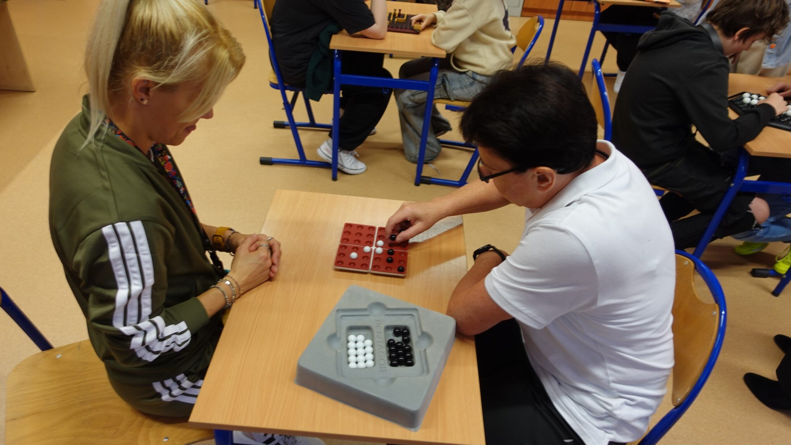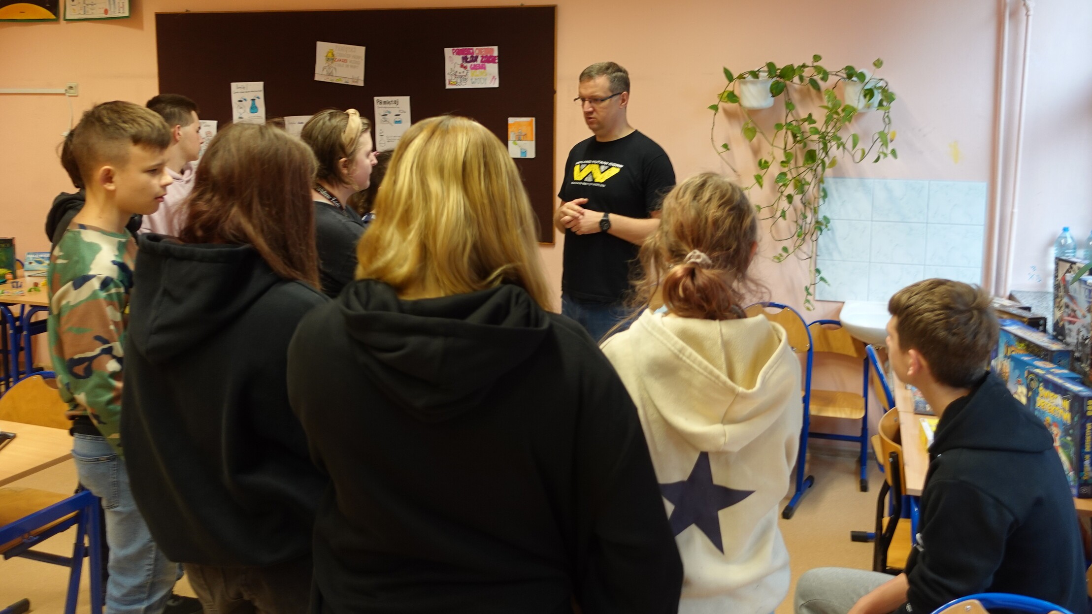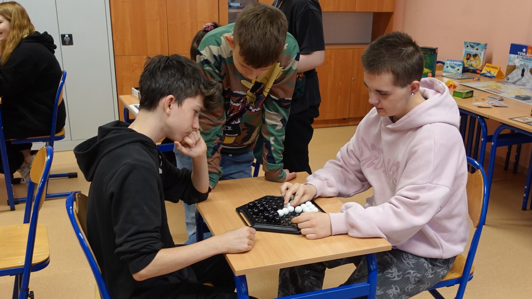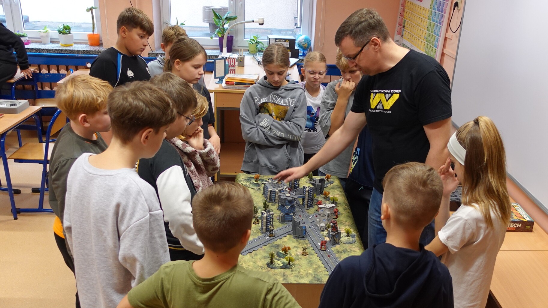 I to właśnie w piątek, 10 października, świętowaliśmy obecność gier planszowych w naszej szkole. Nasi uczniowie i nauczyciele mogli zagrać w gry prostsze i dużo ciekawsze niż Chińczyk oraz zobaczyć wiele innych, różnorodnych tytułów. Od gier przedstawiających konkretne realia historyczne, przez totalne science-fiction, aż do tytułów o tym, kto nabrudził w salonie. Było dużo pytań o różne gry, deklaracje chęci zakupów oraz wielu chętnych do grania na każdej lekcji i przerwie. Zresztą, popatrzcie tylko na zdjęcia.