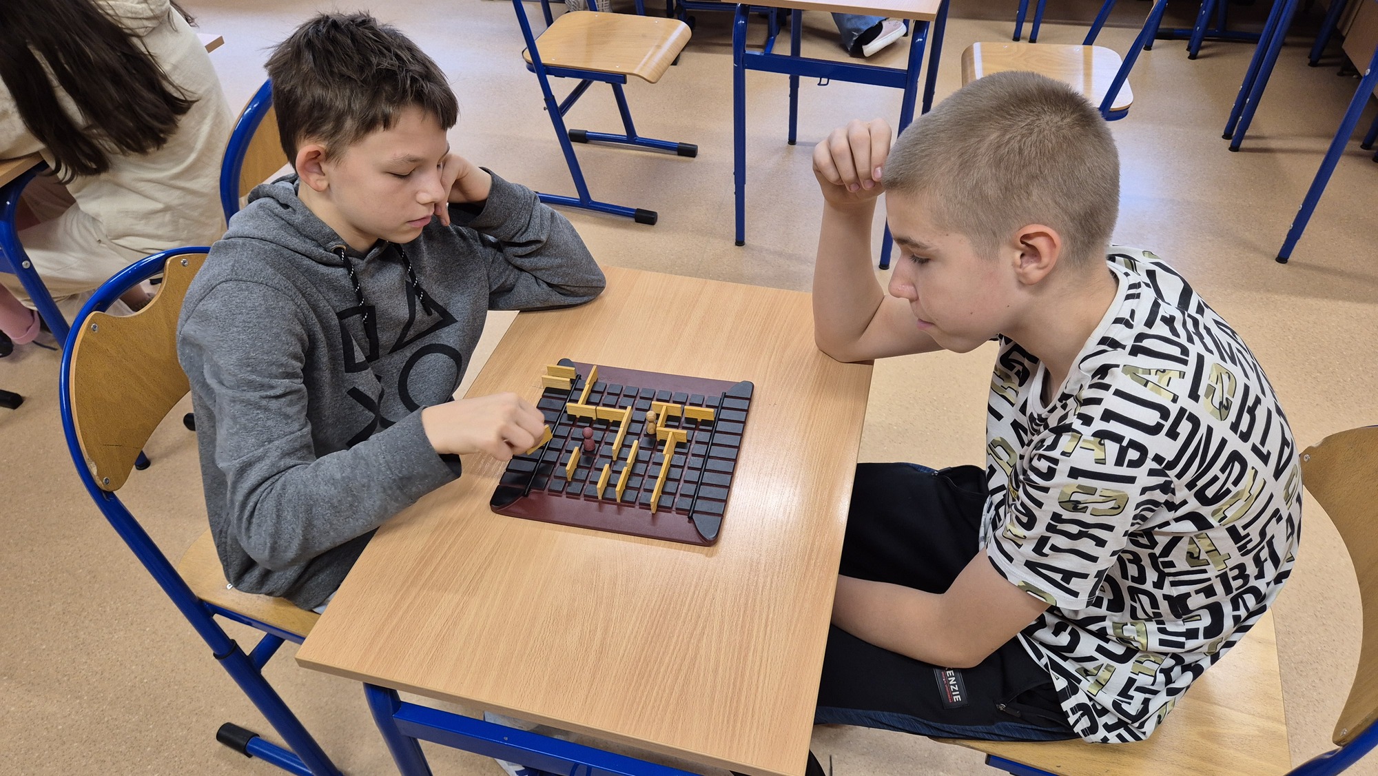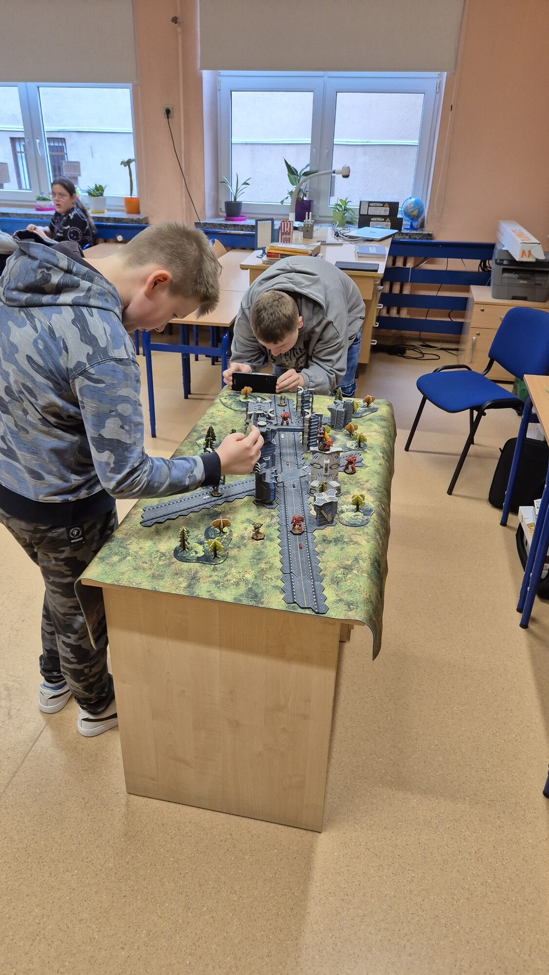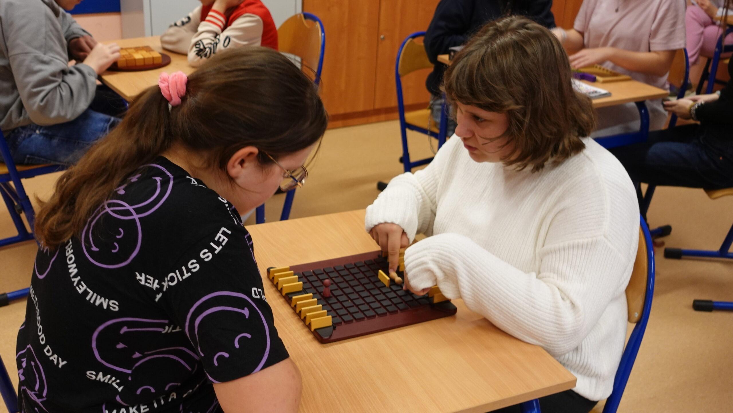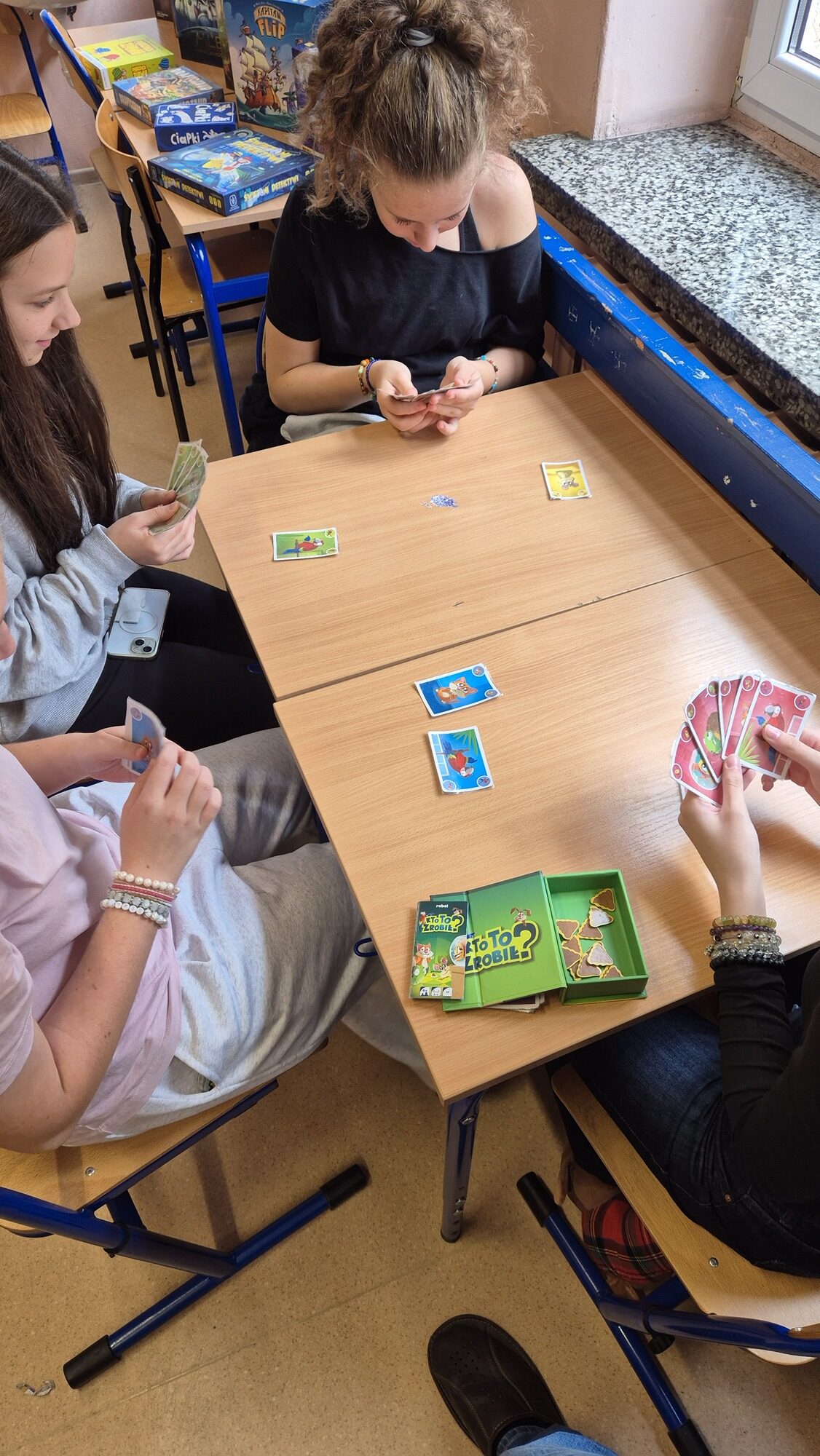 I to właśnie w piątek, 10 października, świętowaliśmy obecność gier planszowych w naszej szkole. Nasi uczniowie i nauczyciele mogli zagrać w gry prostsze i dużo ciekawsze niż Chińczyk oraz zobaczyć wiele innych, różnorodnych tytułów. Od gier przedstawiających konkretne realia historyczne, przez totalne science-fiction, aż do tytułów o tym, kto nabrudził w salonie. Było dużo pytań o różne gry, deklaracje chęci zakupów oraz wielu chętnych do grania na każdej lekcji i przerwie. Zresztą, popatrzcie tylko na zdjęcia.
