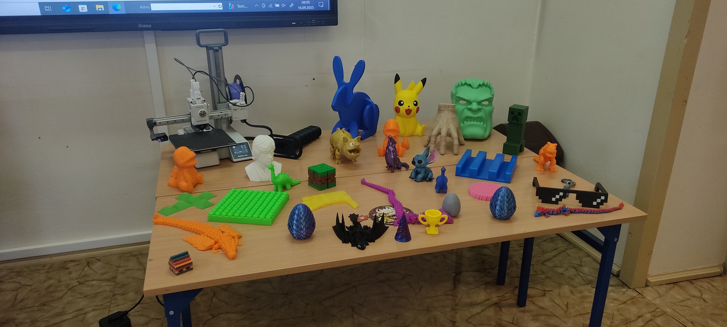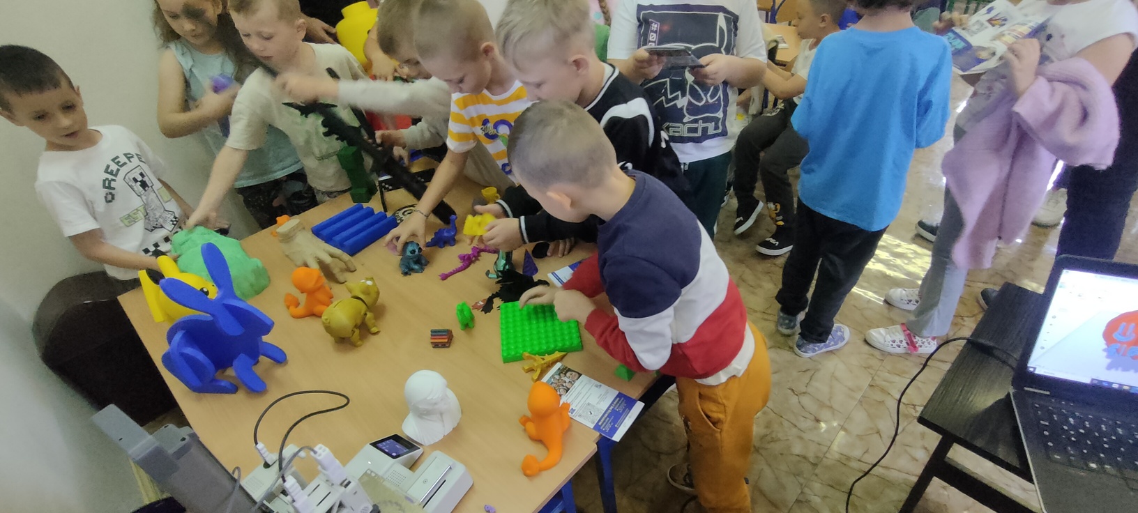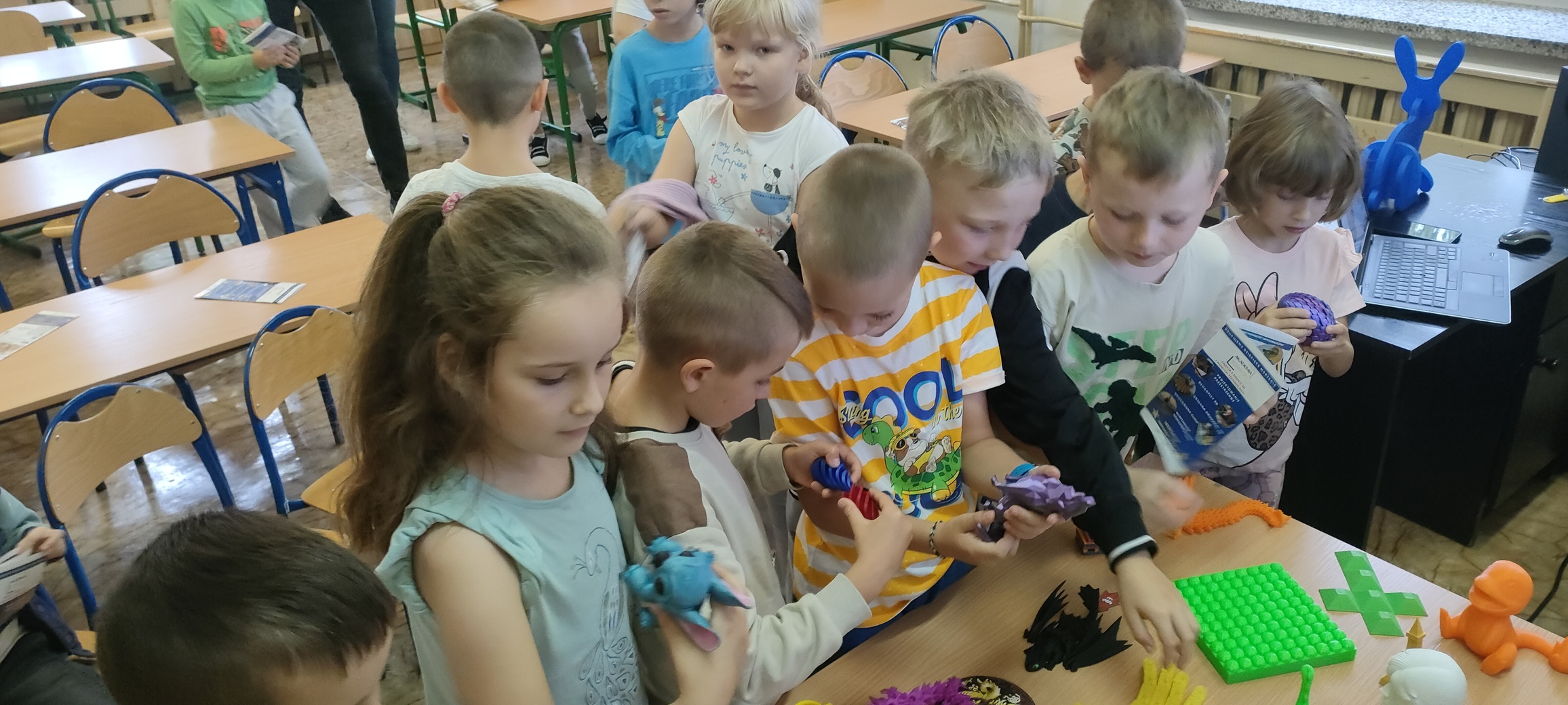 Dnia 16 września klasa pierwsza wzięła udział w spotkaniu z instruktorem, prowadzącym kursy obsługi drukarki 3D. Dzieci były bardzo zaciekawione nową technologią, z uwagą słuchały informacji na temat szerokiego wykorzystania przedstawianego sprzętu. Mogły również obejrzeć i podziwiać prace wytworzone na tych urządzeniach. Po spotkaniu każde dziecko otrzymało drobny prezent, małą zabawkę 3D, którą samodzielnie złożyło.